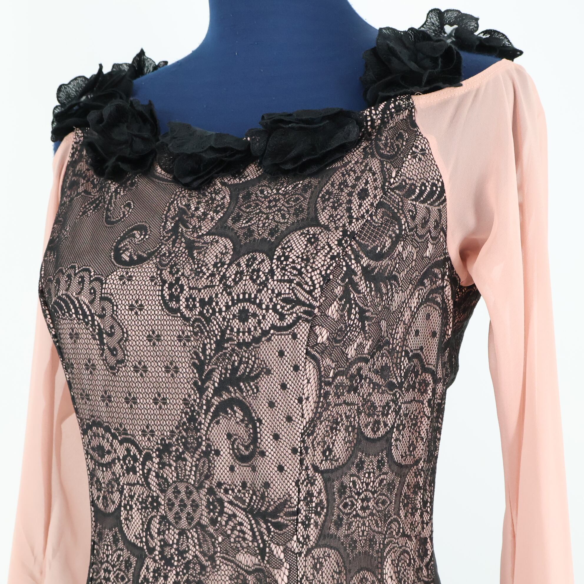 【美品 日本製 社交ダンス衣装】ピンク Chacott チャコット ワンピース ドレス 黒 ブラック レース フリル 軽い 発表会