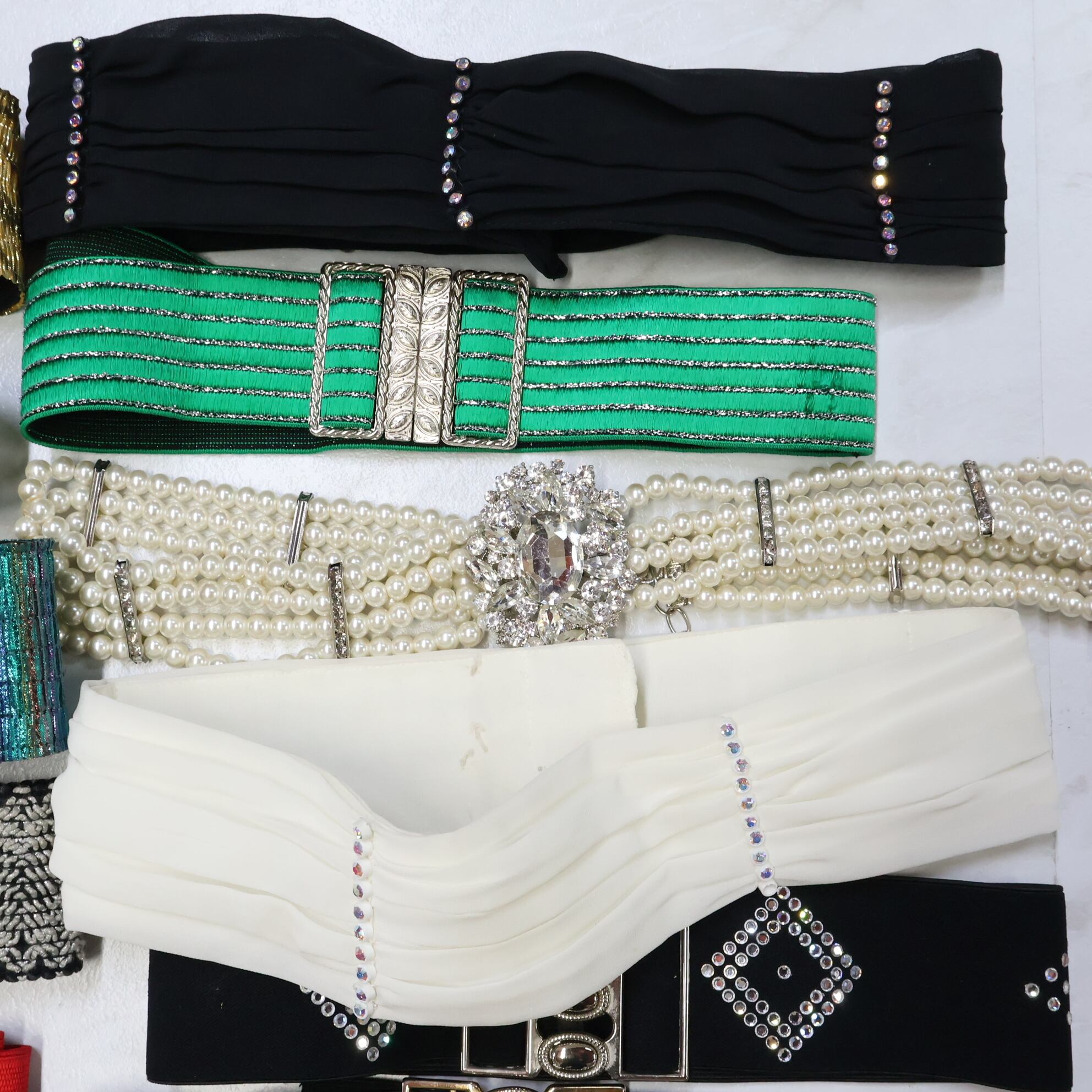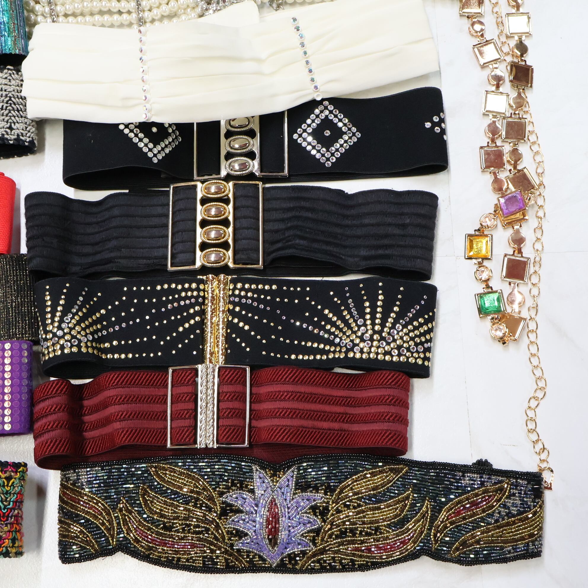 【社交ダンス衣装 まとめ売り】全18点 セット ベルト サッシュ ゴム アジャスター ダンス用 高級感 ウエストベルト 上品 レディース ゴールド ブルー お洒落 パーティ 発表会