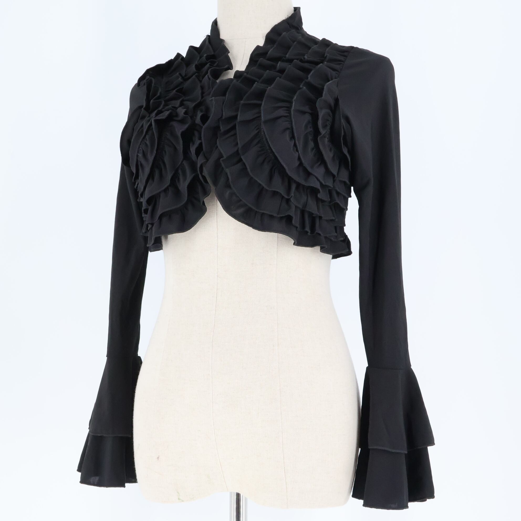 【美品 フラメンコ衣装】ブラック ブラウス トップス 長袖 黒 無地 フリル 段々 ボレロ ダンス用 伸縮 豪華 華やか レディース