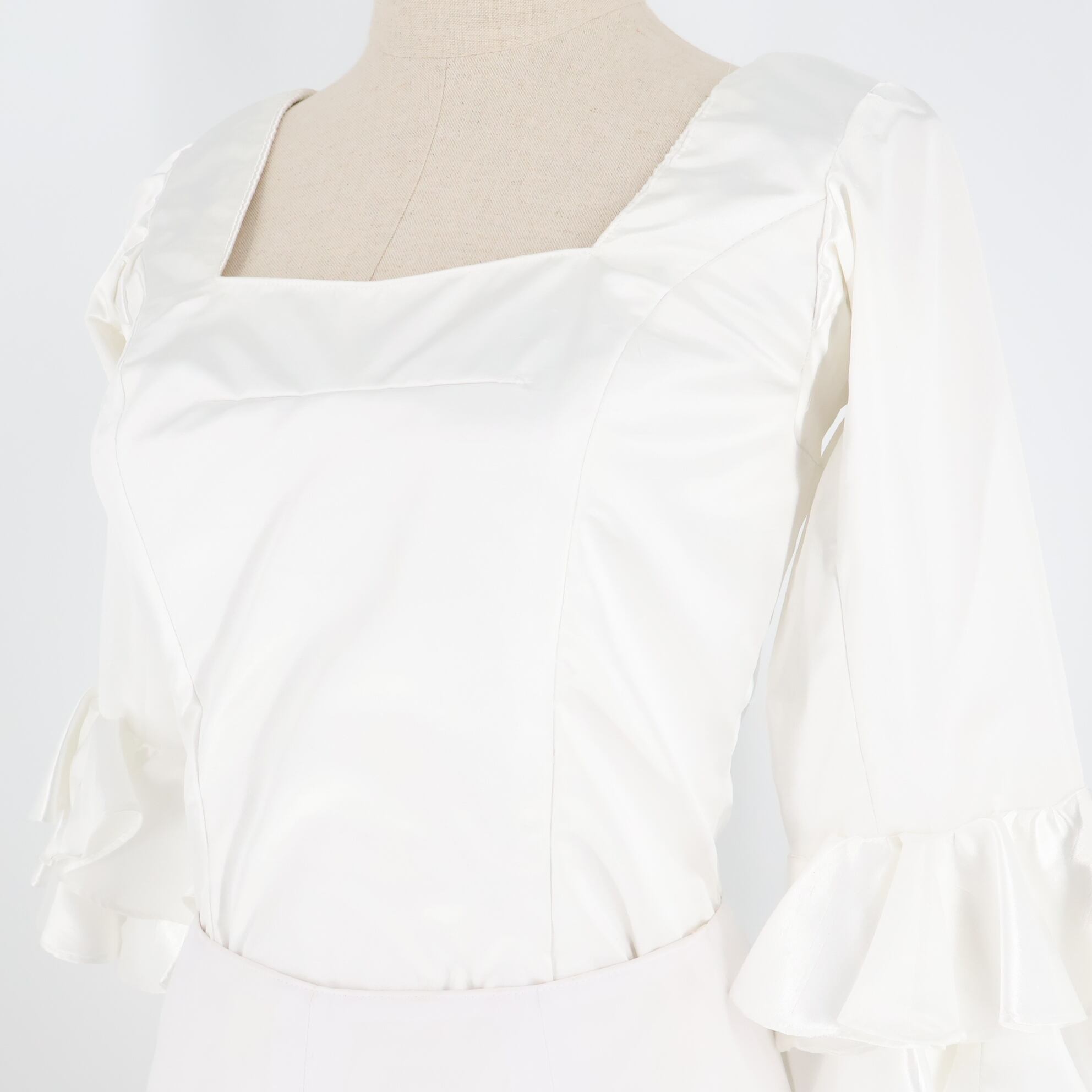 #フラメンコ衣装 #ホワイトコーデ #上下セット #ペチコート #ブラウスデザイン #無地ファッション #フリルディテール #レースアクセント #ボランテスタイル #ステージ衣装 #発表会用 #ダンスコスチューム #中古衣装 #エレガントデザイン #華やかコーデ #女性用衣装 #ダンスファッション #ENUTSU #フラメンコスタイル #パフォーマンスウェア