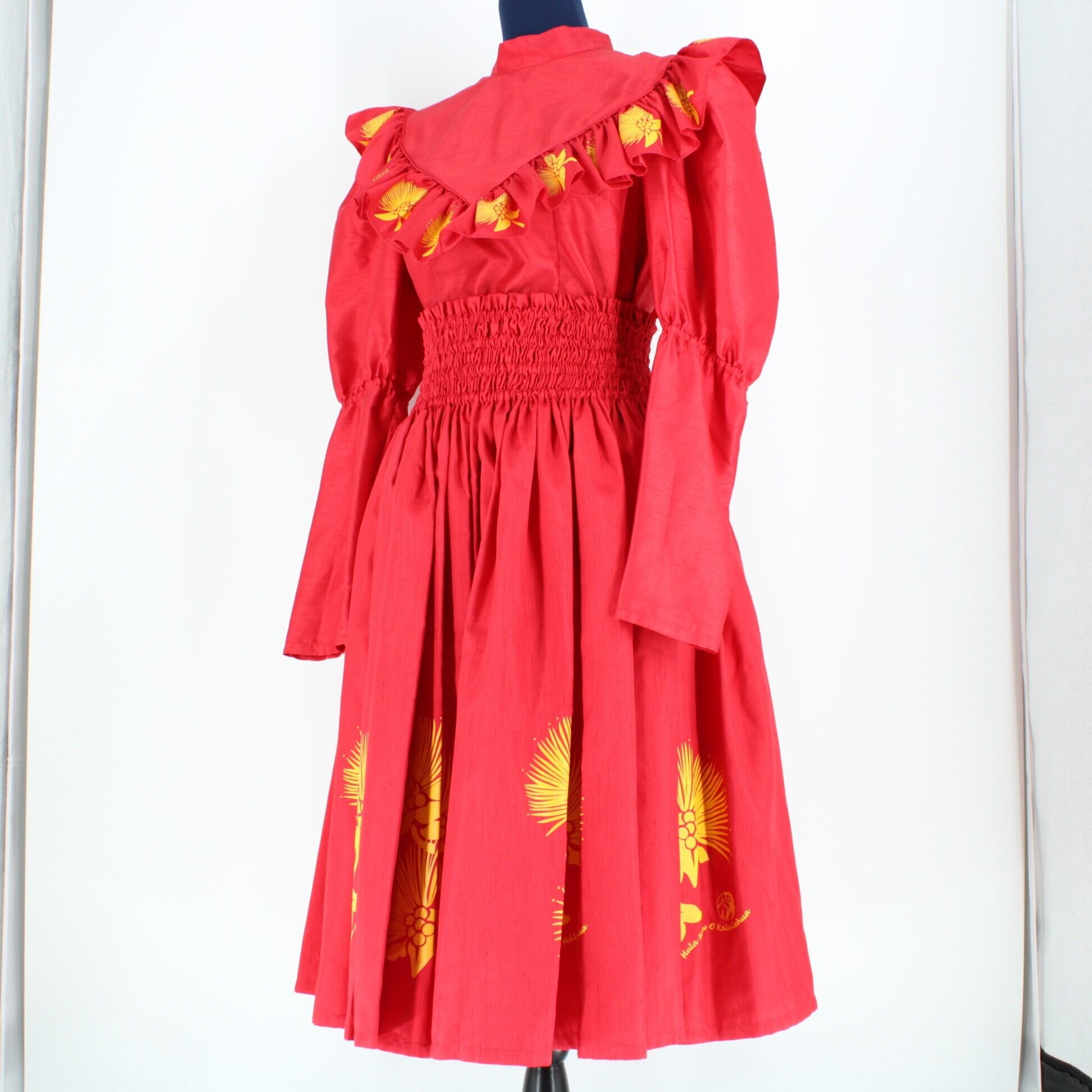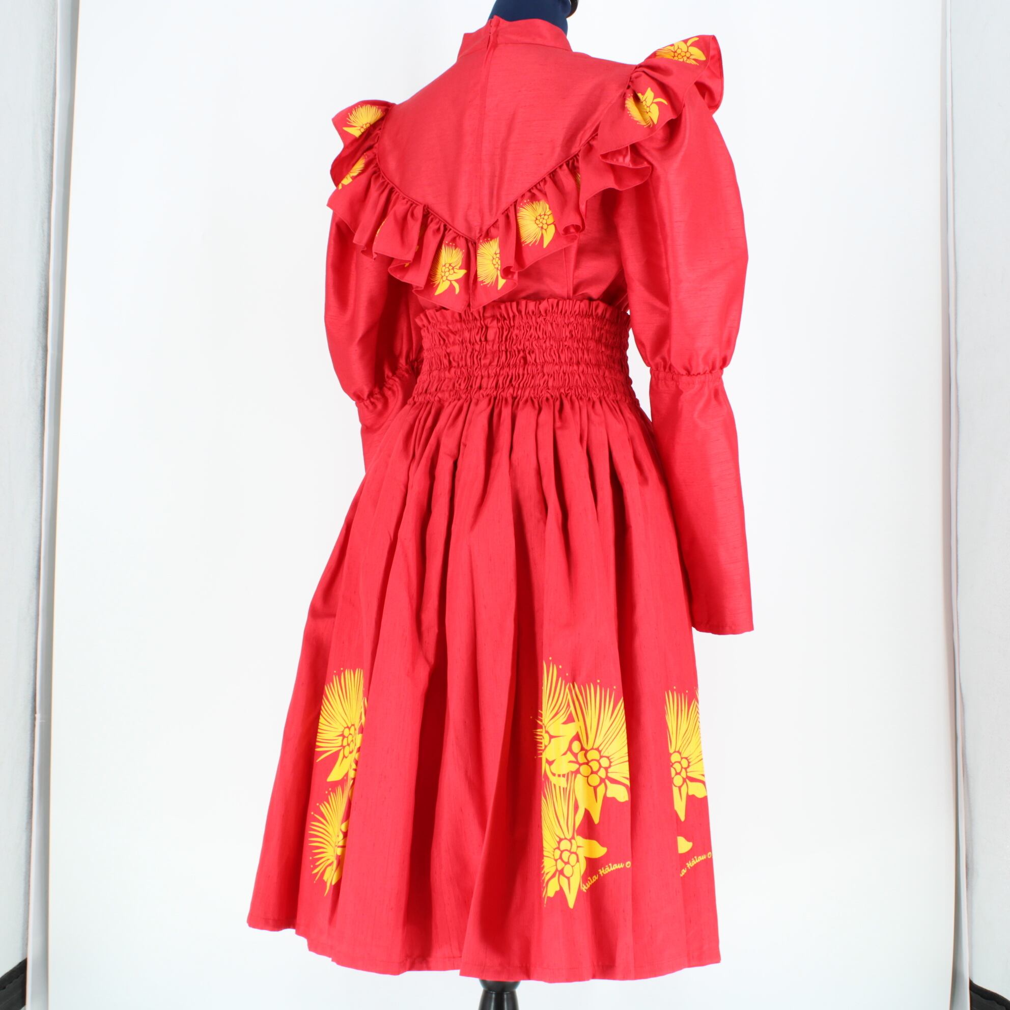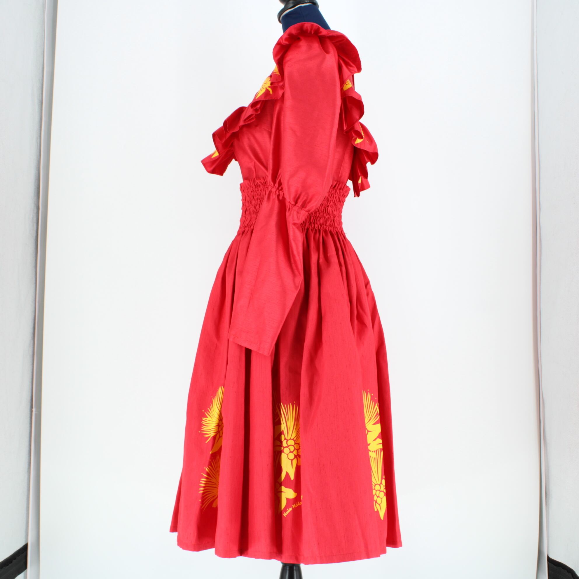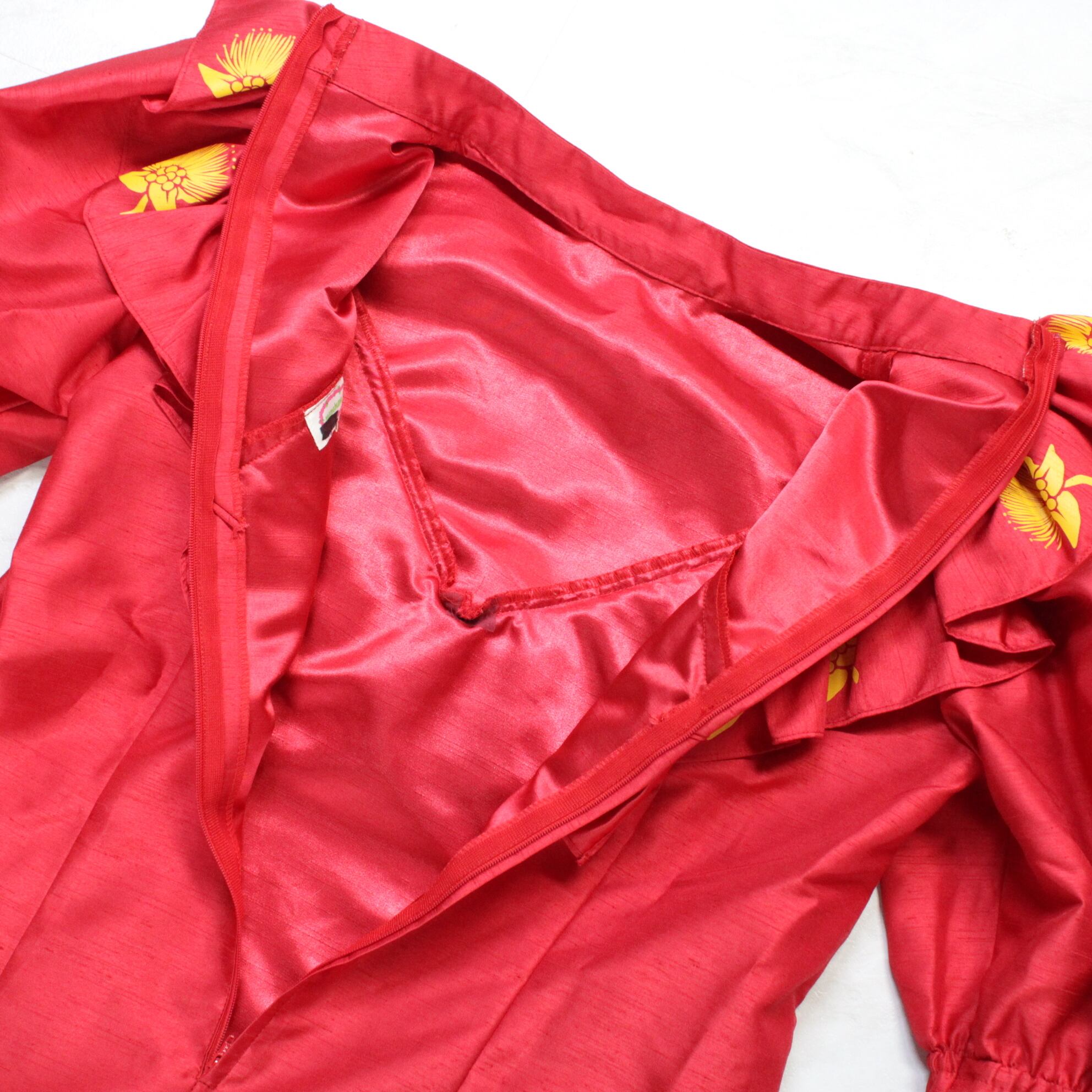 【美品 日本製 フラダンス衣装】レッド MENEHUNE PLANTETION メネフネプランテーション 上下セット ツーピース セットアップ