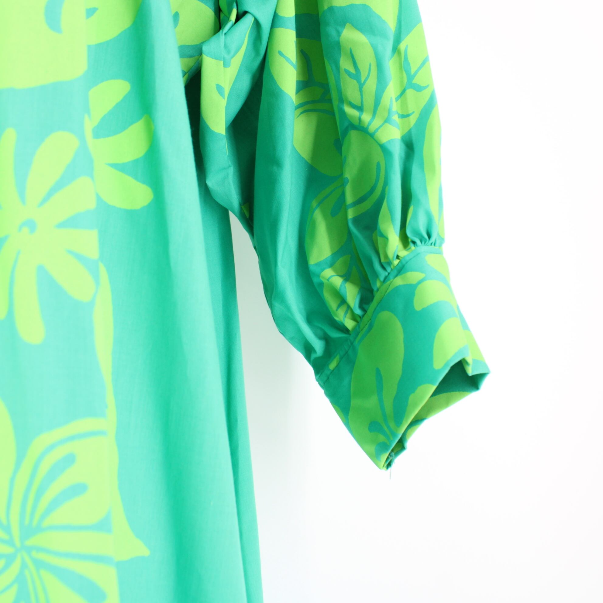 #フラダンス #ハワイアンファッション #プルメリア柄 #ティアレ柄 #グリーンドレス #黄緑コーデ #フラ衣装 #フリルデザイン #花柄ドレス #華やかスタイル #ダンス衣装 #南国スタイル #トロピカルファッション #ハワイアンスタイル #可愛いワンピース #エレガントスタイル #リゾートファッション #ダンスコスチューム #ステージ衣装 #古着 #中古 #ENUTSU
