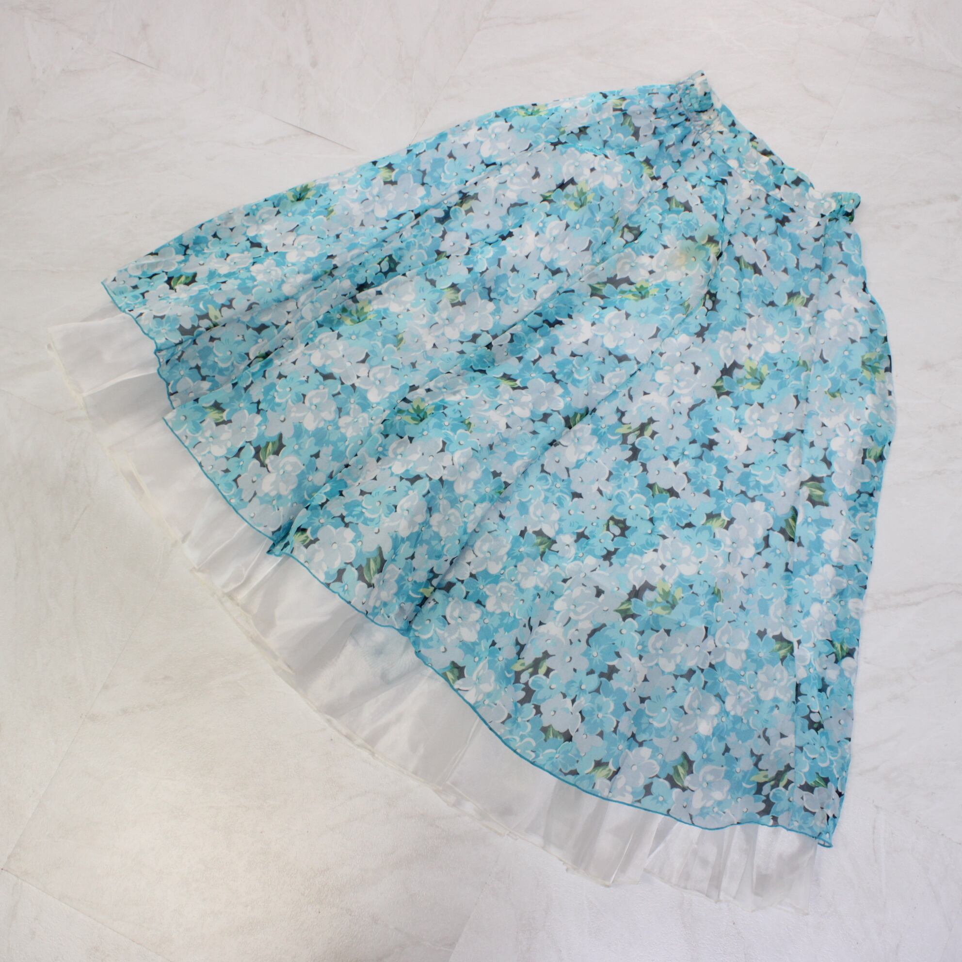 #社交ダンス衣装 #ダンススカート #ライトブルー #フェミニンデザイン #花柄スカート #ダンスコスチューム #ステージ衣装 #古着 #中古 #ENUTSU