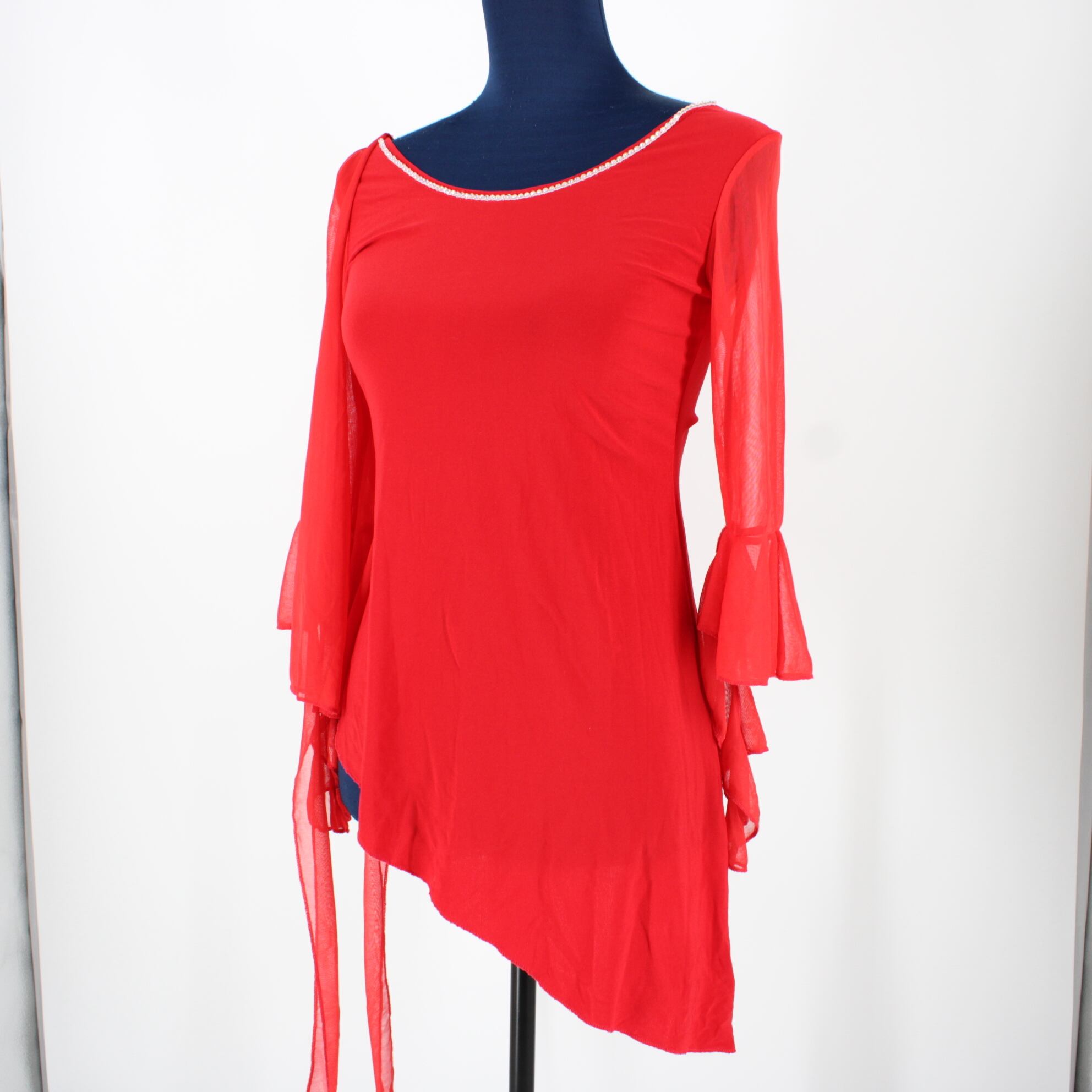 #社交ダンス衣装 #トップス #オールレッド #ラインストーン #ダンスファッション #Leirena #ダンスコスチューム #ステージ衣装 #古着 #中古 #ENUTSU
