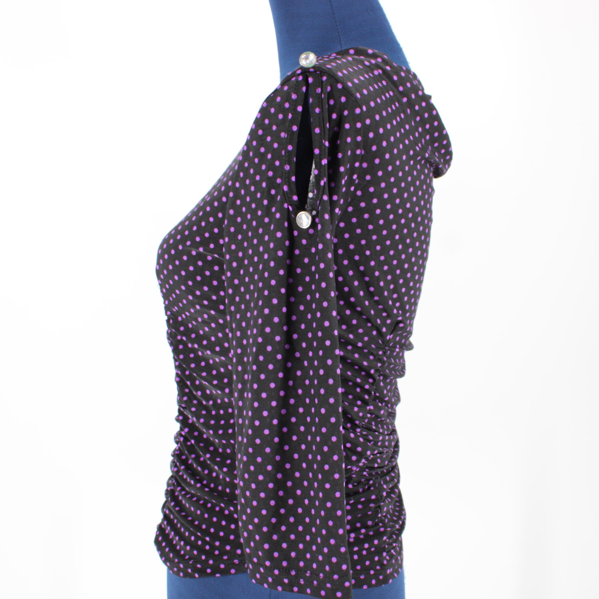【美品 社交ダンス衣装】トップス leirena レイリーナ 紫 パープル ブラック 黒 水玉 ドット かわいい 可愛い 上品 シック