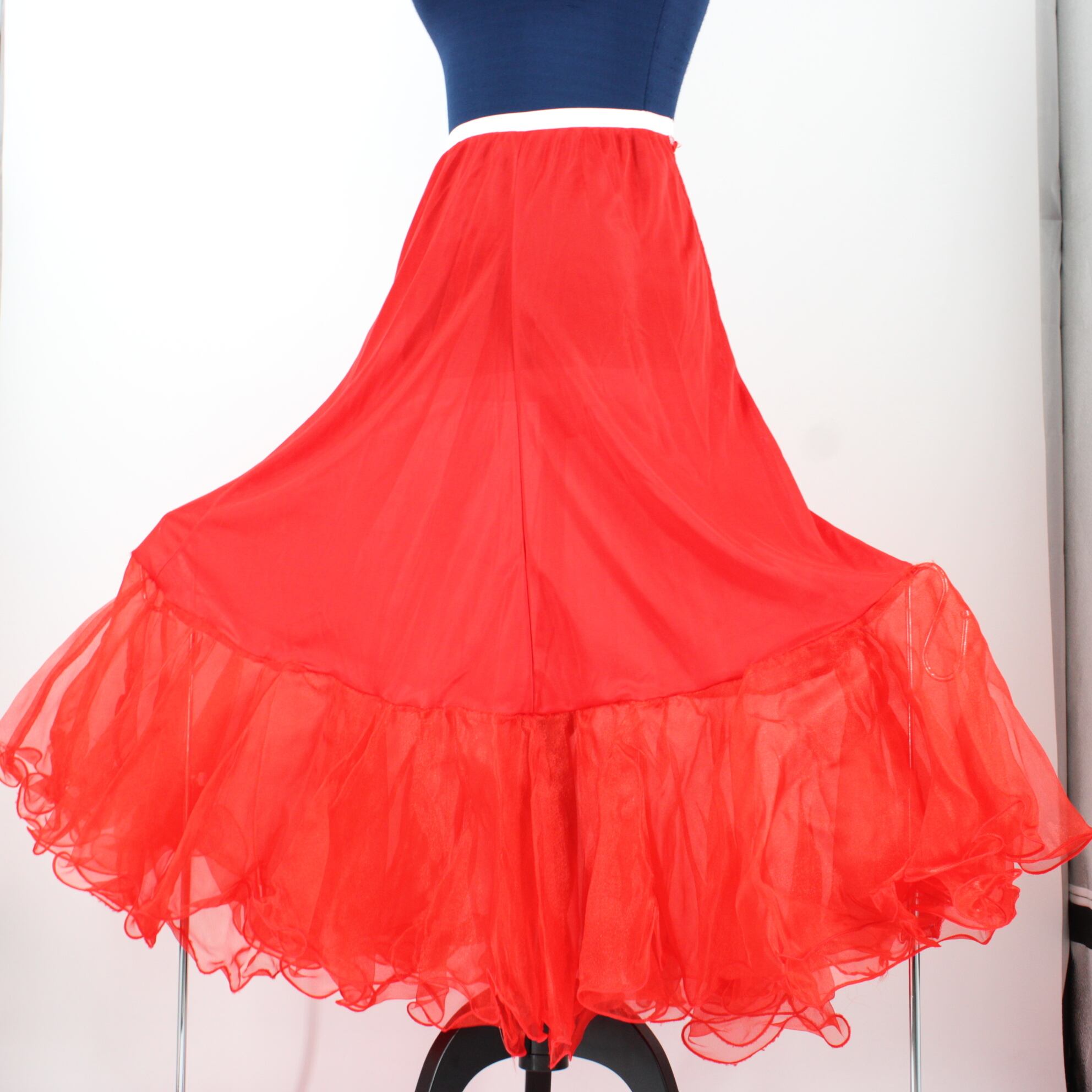【美品 社交ダンス衣装】スカート パニエ ペチコート 赤 レッド かわいい 可愛い 派手 目立つ 差し色 上品 シンプル 無地