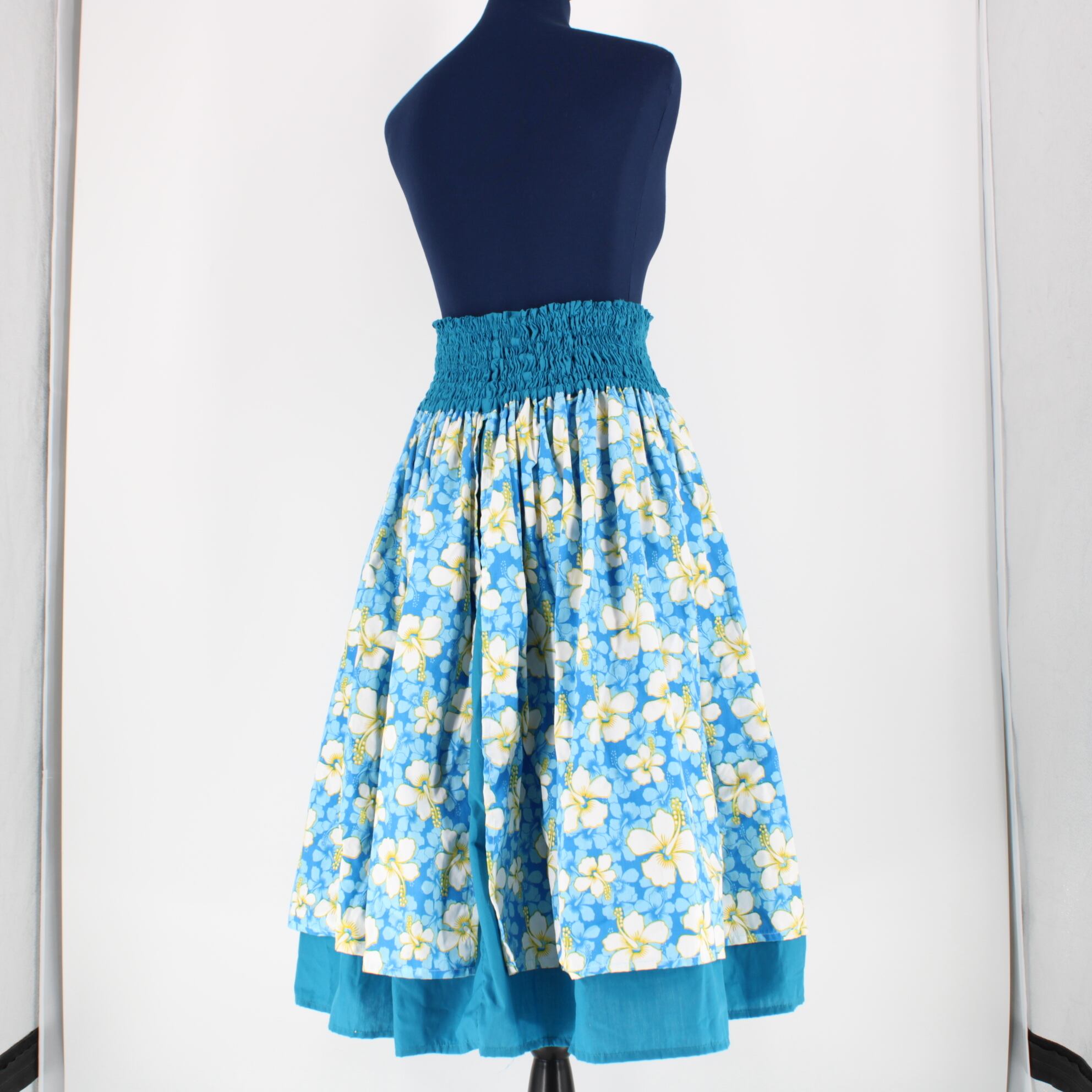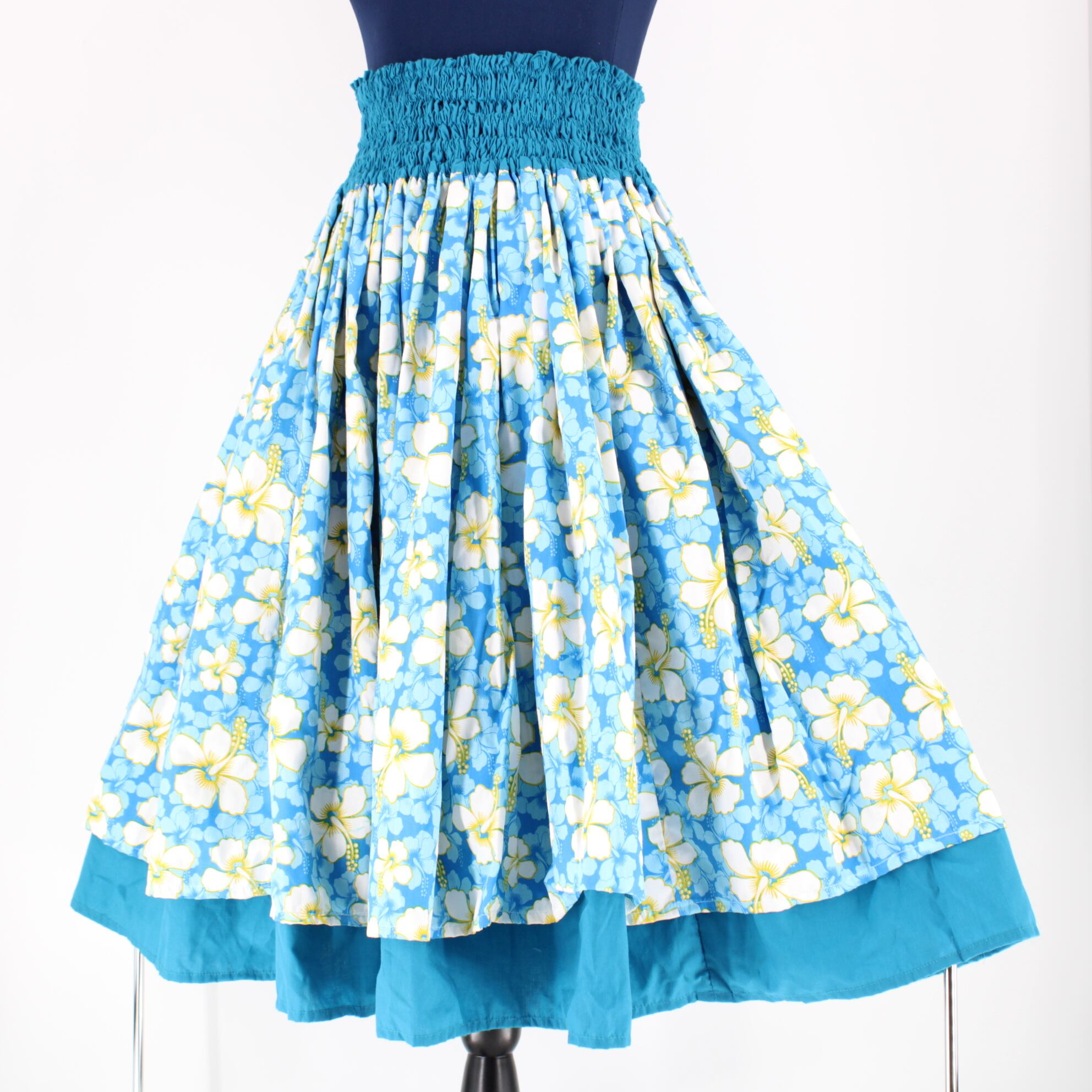 【フラダンス衣装】スカイブルー Ethnic Labels パウスカート 水色 ハイビスカス柄 爽やか 花柄 華やか鮮 シングル かわいい