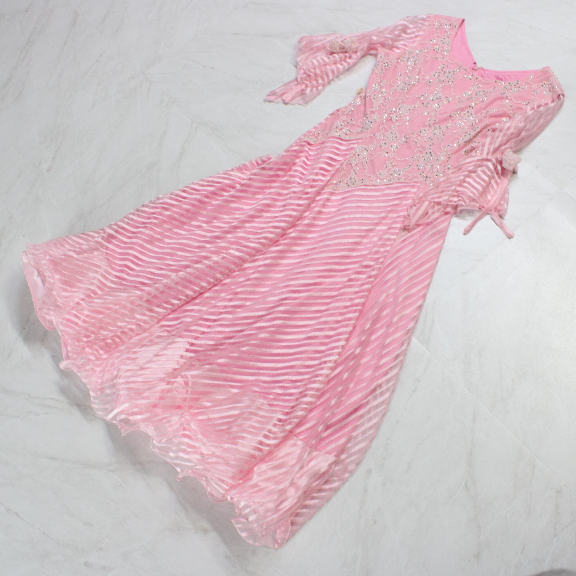 #社交ダンス衣装 #社交ダンスドレス #ピンク #ラインストーン #二重スカート #レース #華やか #ダンスファッション #ダンスコスチューム #ステージ衣装 #古着 #中古 #ENUTSU