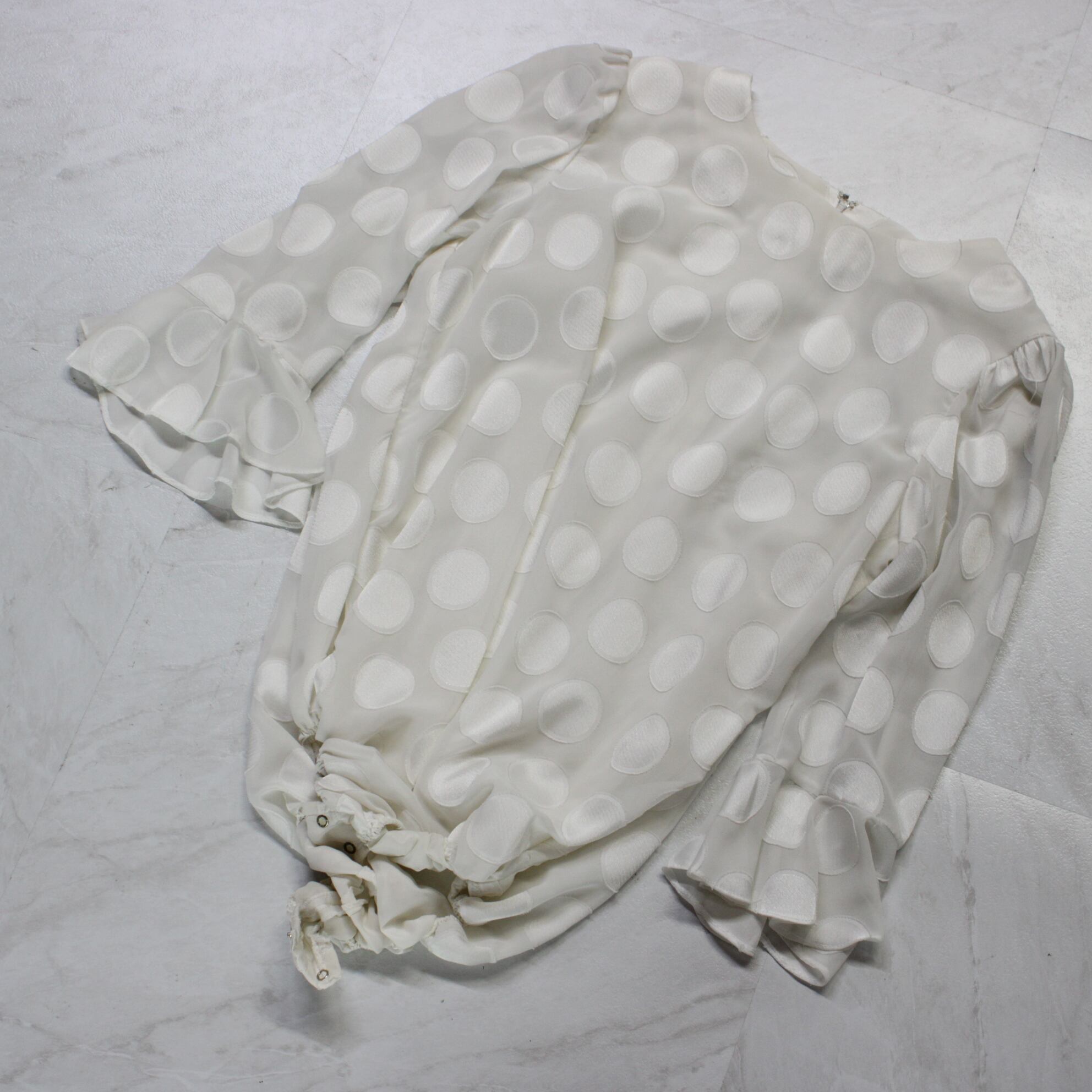 【美品 日本製社交ダンス衣装】上下セット Lサイズ Mサイズ トップス レオタード スカート 白 ホワイト ドット 水玉 かわいい