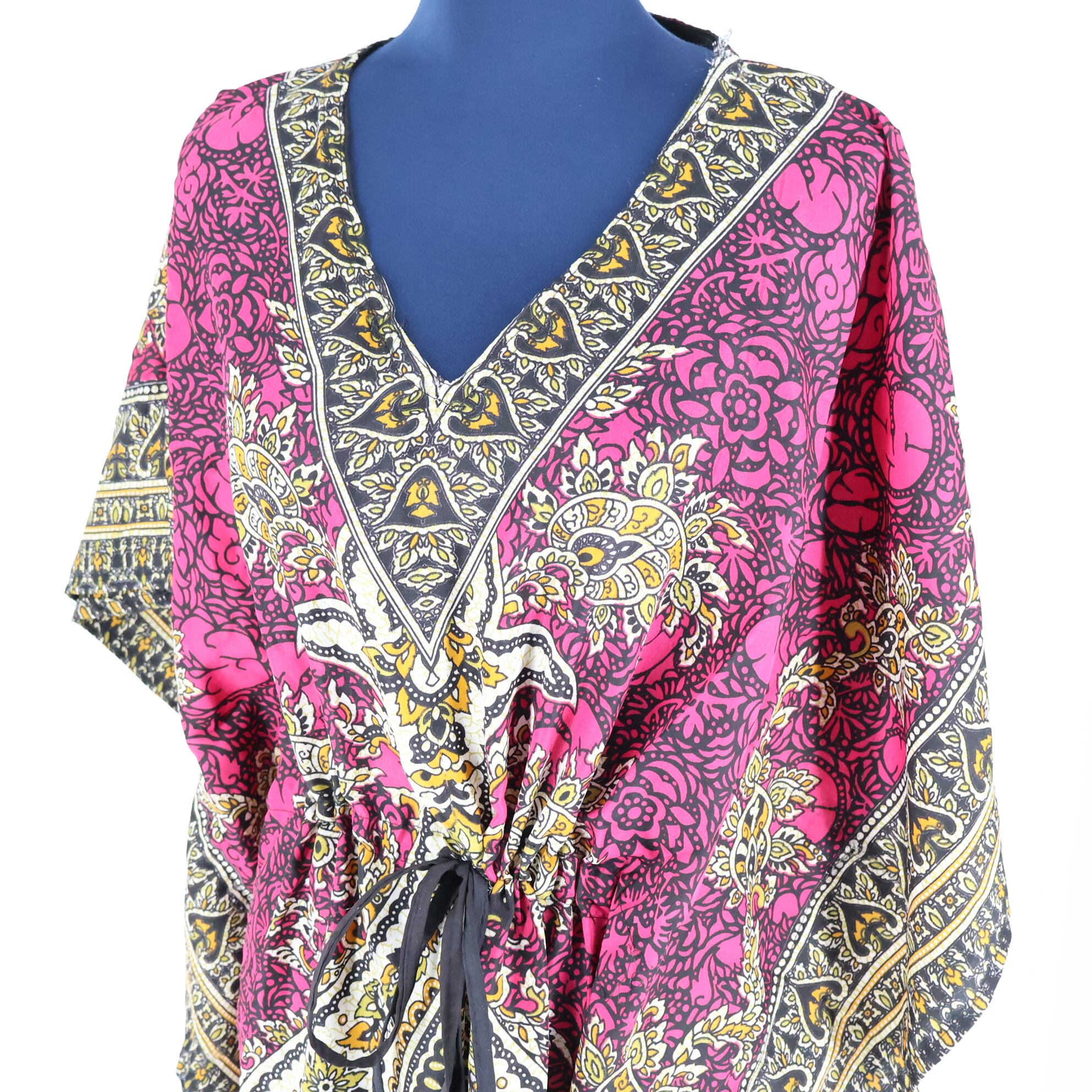【インド製 ベリーダンス用衣装】ピンク Garam garam ガラベーヤ ワンピース ドレス チュニック 絞り 異国情緒 柄 華やか 紐