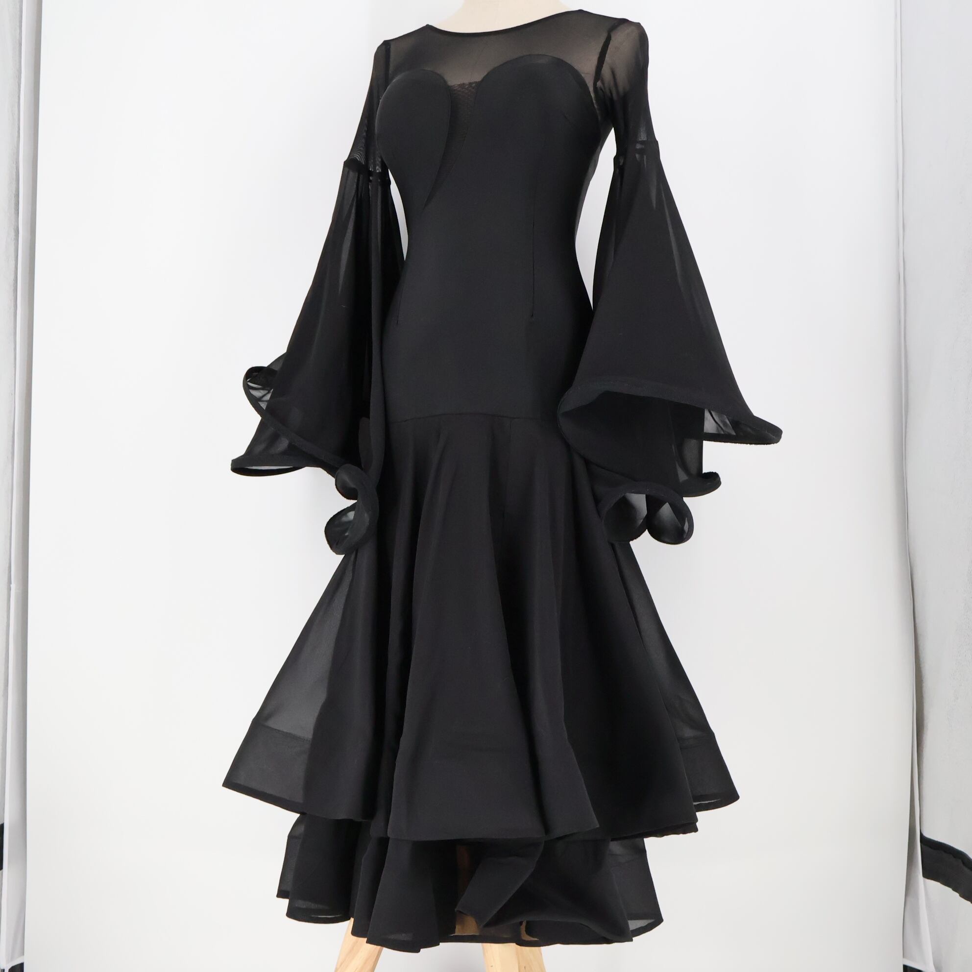 #ダンス衣装 #ダンスコスチューム #ステージ衣装 #古着 #中古 #ENUTSU #社交ダンス #ワンピース #ドレス #ブラックドレス #レース #フリル #エレガント #競技ダンス #発表会 #パーティードレス #高級感 #レディースファッション #デモンストレーション #ダンス用コスチューム