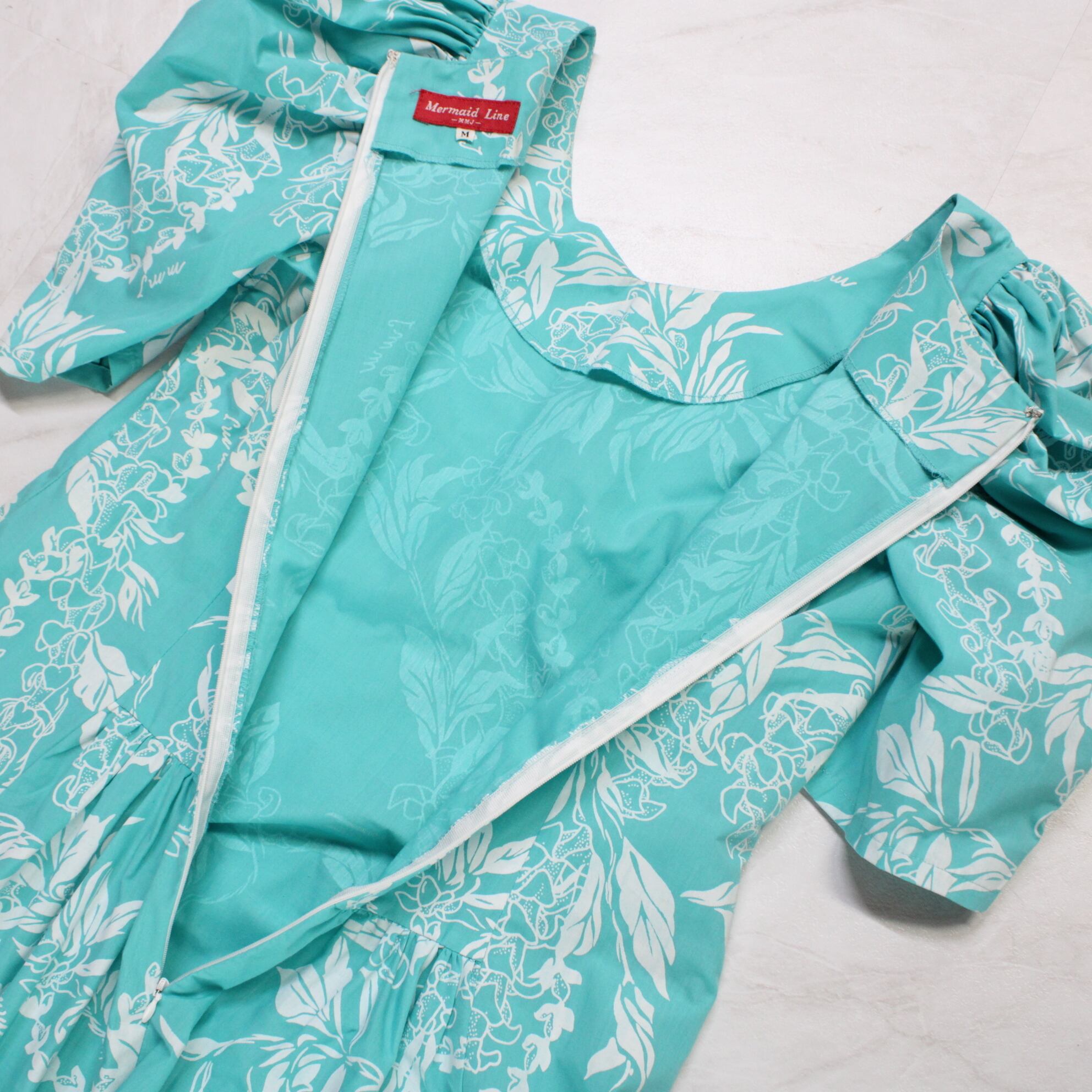 【フラダンス衣装】スカイブルー MermaidLine MMJ マーメイドライン ワンピース ドレス 水色 白 ホワイト 花 アロハ かわいい