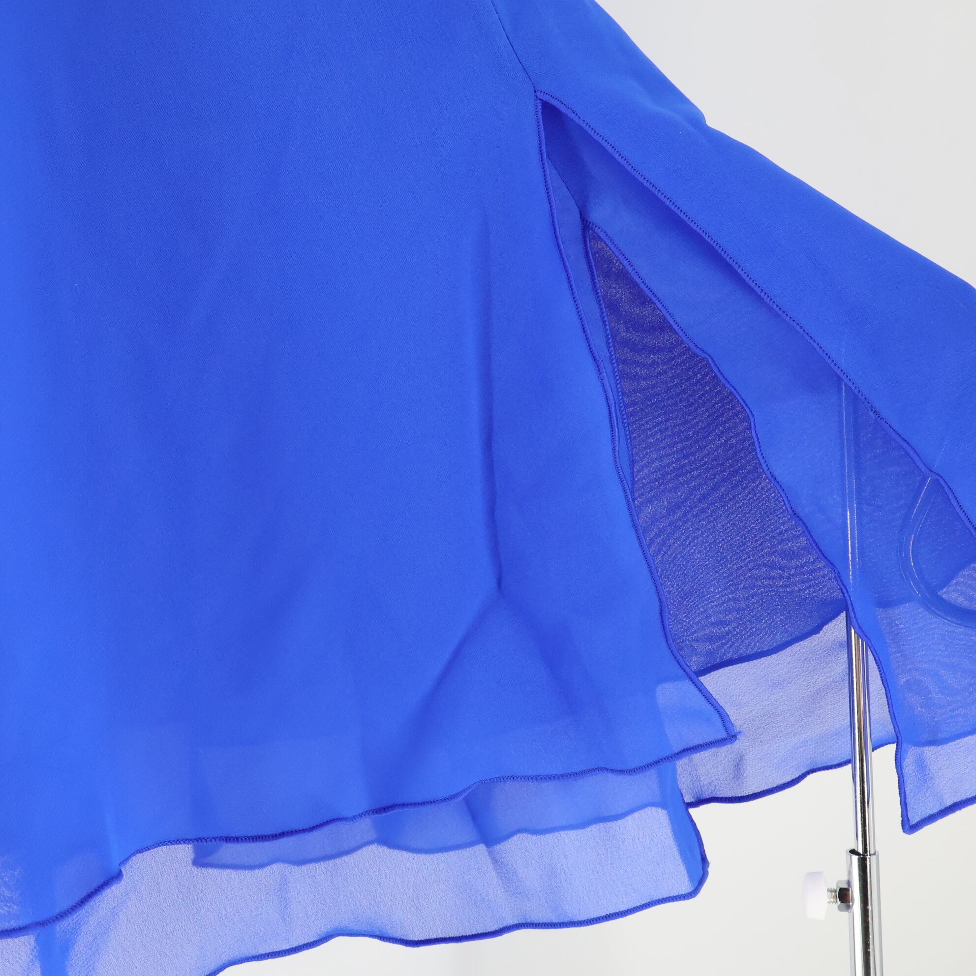 【美品 日本製 社交ダンス衣装】ブルー Chacott チャコット スカート レース 青 無地 軽い ミニ丈 ラテン スリット レッスン