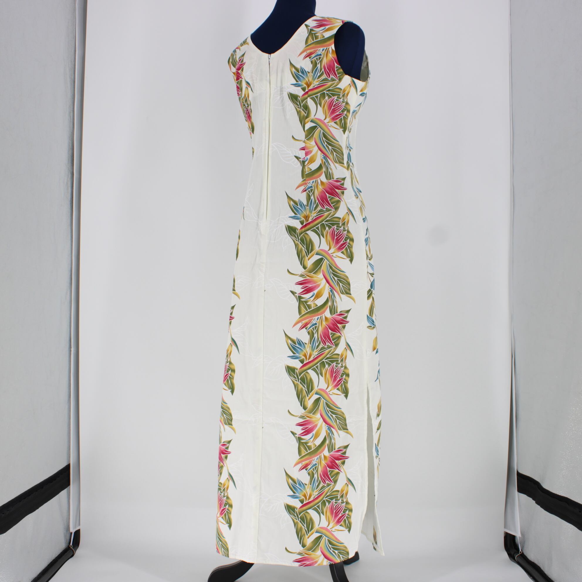 【美品 ハワイ製 フラダンス衣装】ホワイト KY's international fashion ワンピース ドレス 花柄 カラフル 赤 白 青 緑 可愛い