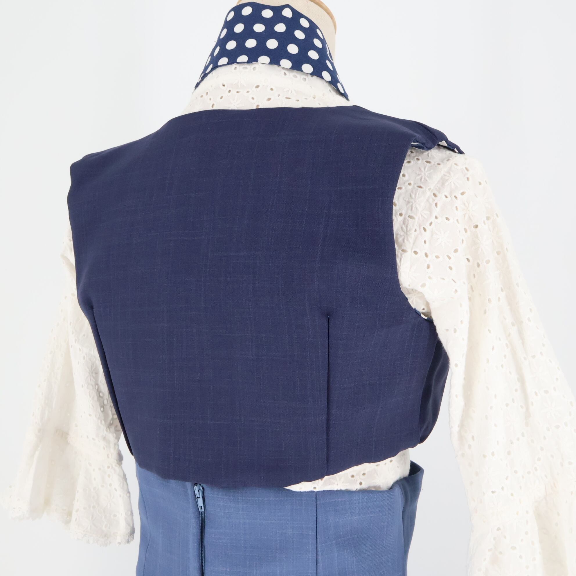 【フラメンコ衣装】ネイビー yoko elegancia 4点セット ファルダ ブラウス チャレコ 紺色 ボランテ ボウタイ 水玉 フリル 無地 段々 水玉 柄 模様 ベスト チョッキ シージョ ネクタイ トップス ホワイト 白 レース フリル 発表会 ダンス