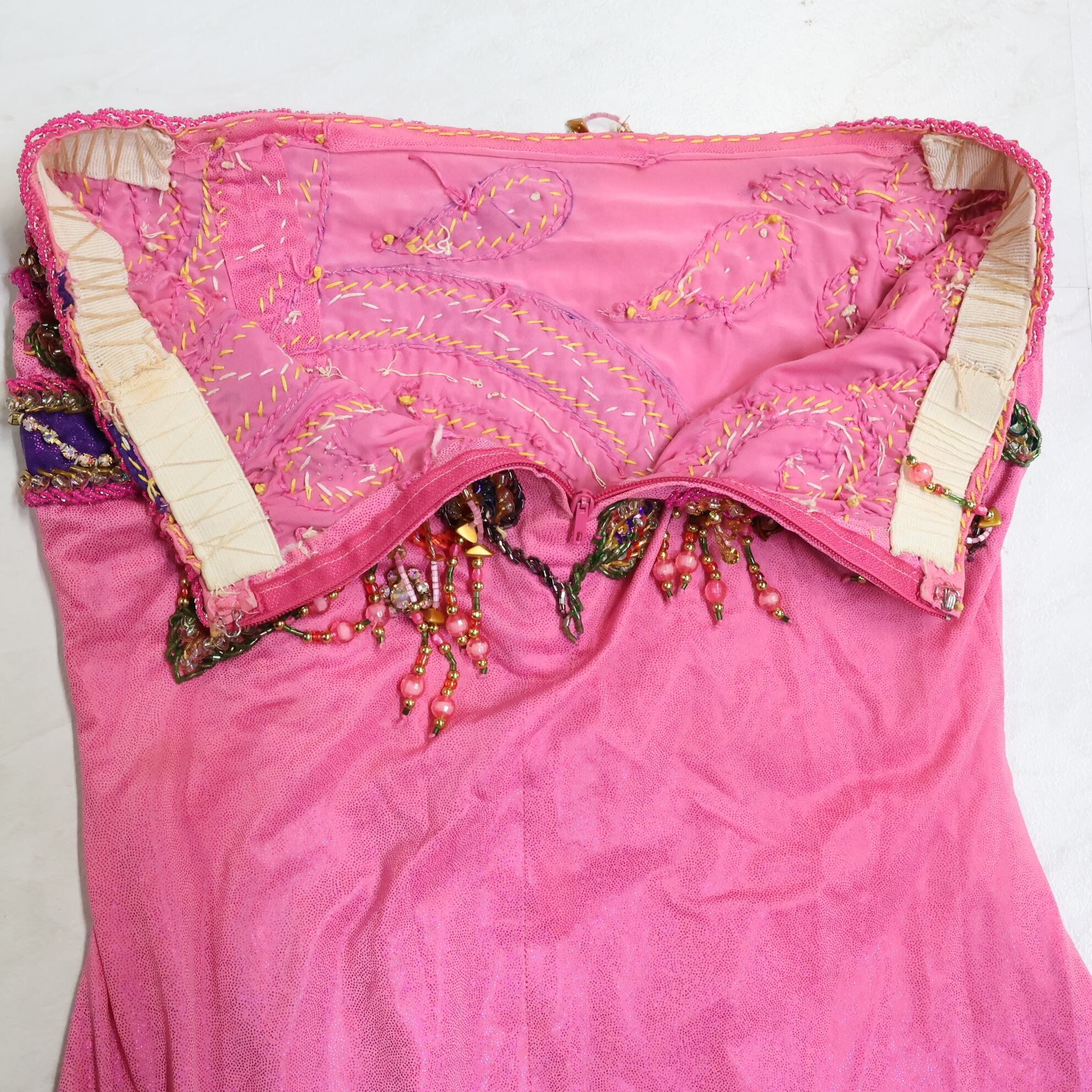 #ダンス衣装 #ダンスコスチューム #ステージ衣装 #古着 #中古 #ENUTSU #ベリーダンス #オリエンタル衣装 #ピンク衣装 #ラインストーン #ビーズ装飾 #ラメ入り #スリットドレス #華やかスタイル #女性らしい #煌びやか #エレガント #ブラトップセット #スカートセット #アクセサリー付き #豪華デザイン