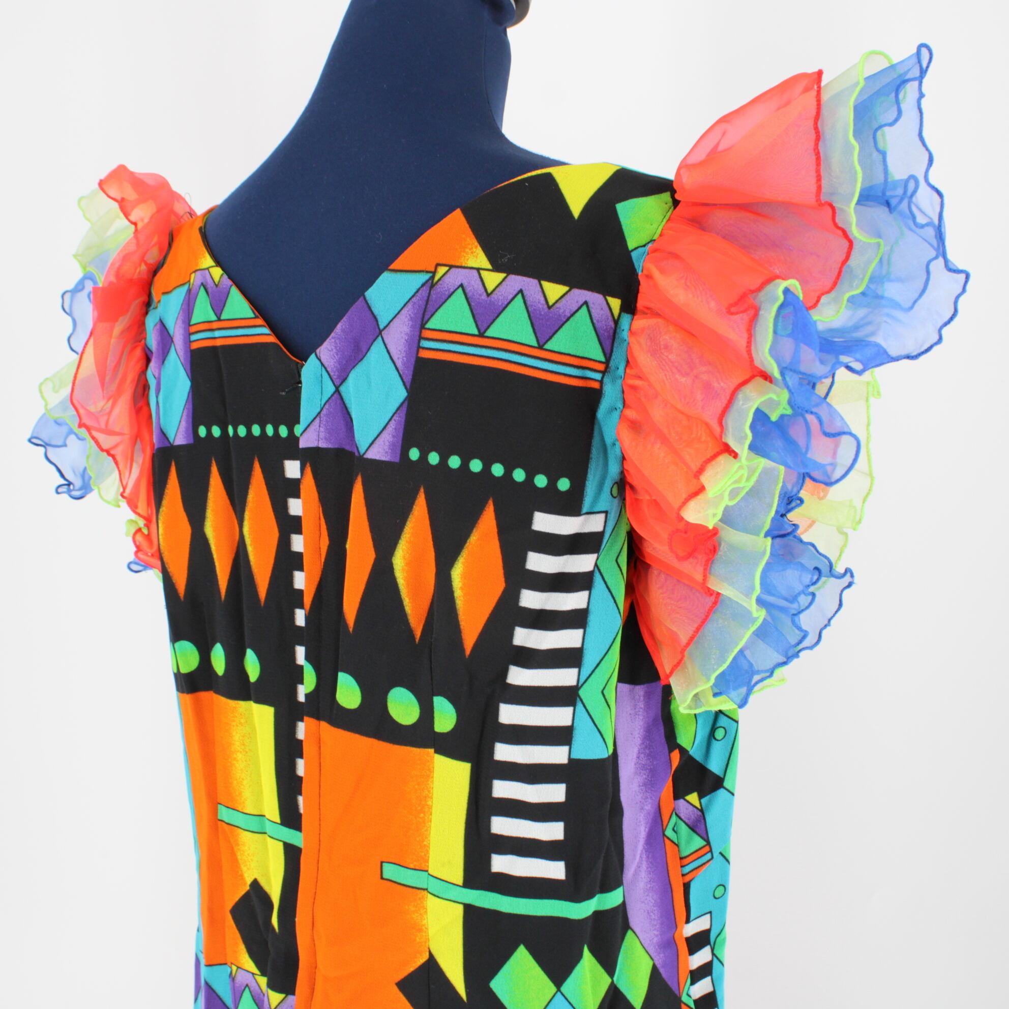 #フラダンス衣装 #フラダンス #ワンピース #カラフル #鮮やか #フリル #レース #華やか #オレンジ #青 #黄 #ブルー #イエロー #緑 #紫 #レディースファッション #フラガール #アロハ #ハワイアン #トロピカル #南国スタイル #ダンス衣装 #ダンスコスチューム #ステージ衣装 #古着 #中古 #ENUTSU