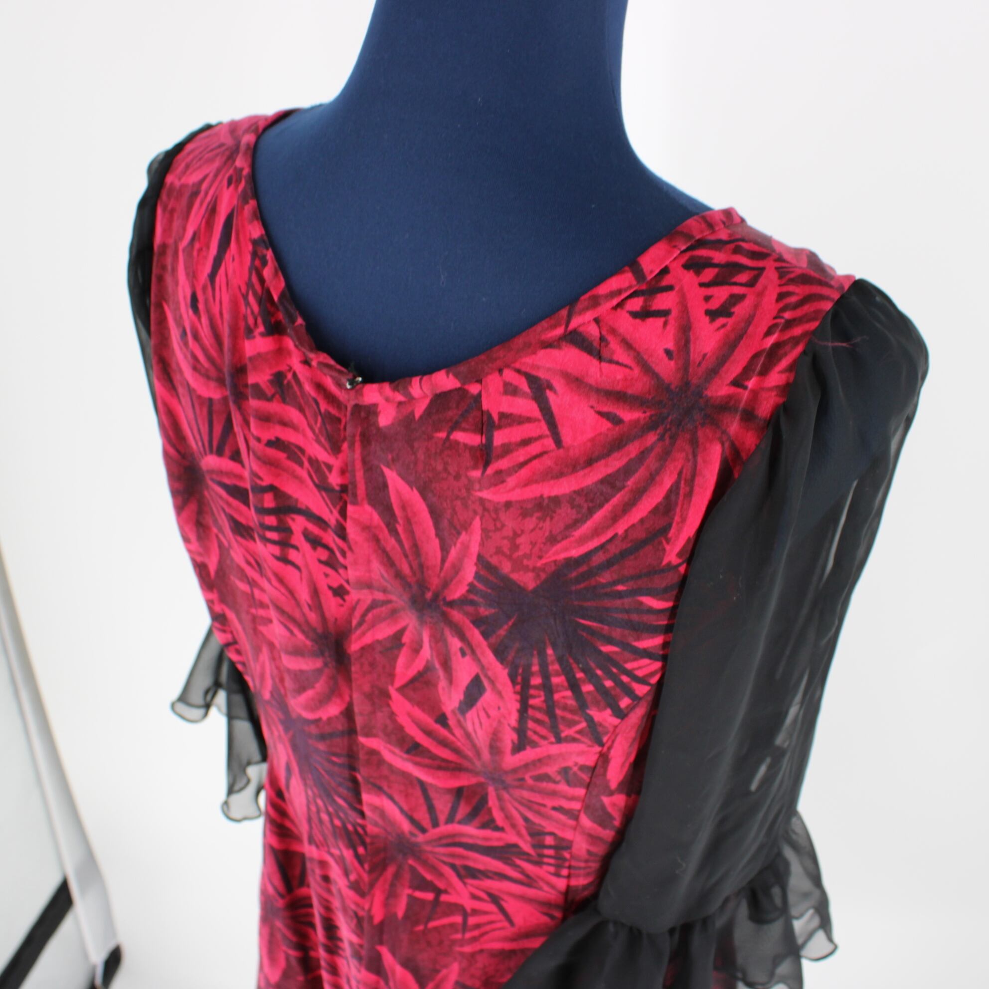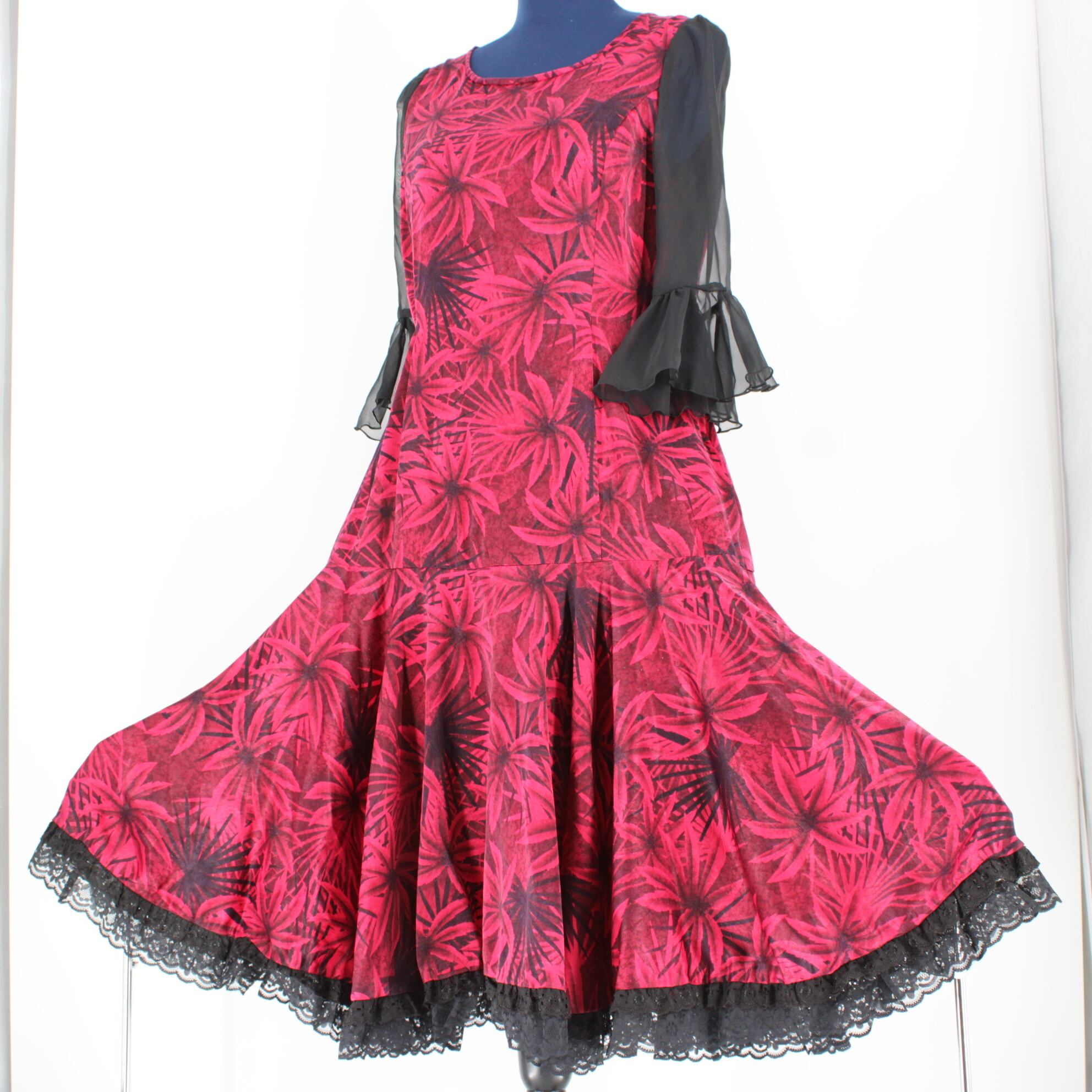 #社交ダンス衣装 #ダンスドレス #ブラック #マゼンダピンク #ボタニカルデザイン #レース素材 #エレガント #舞台衣装 #ステージ衣装 #ダンスコスチューム #古着 #中古 #ENUTSU