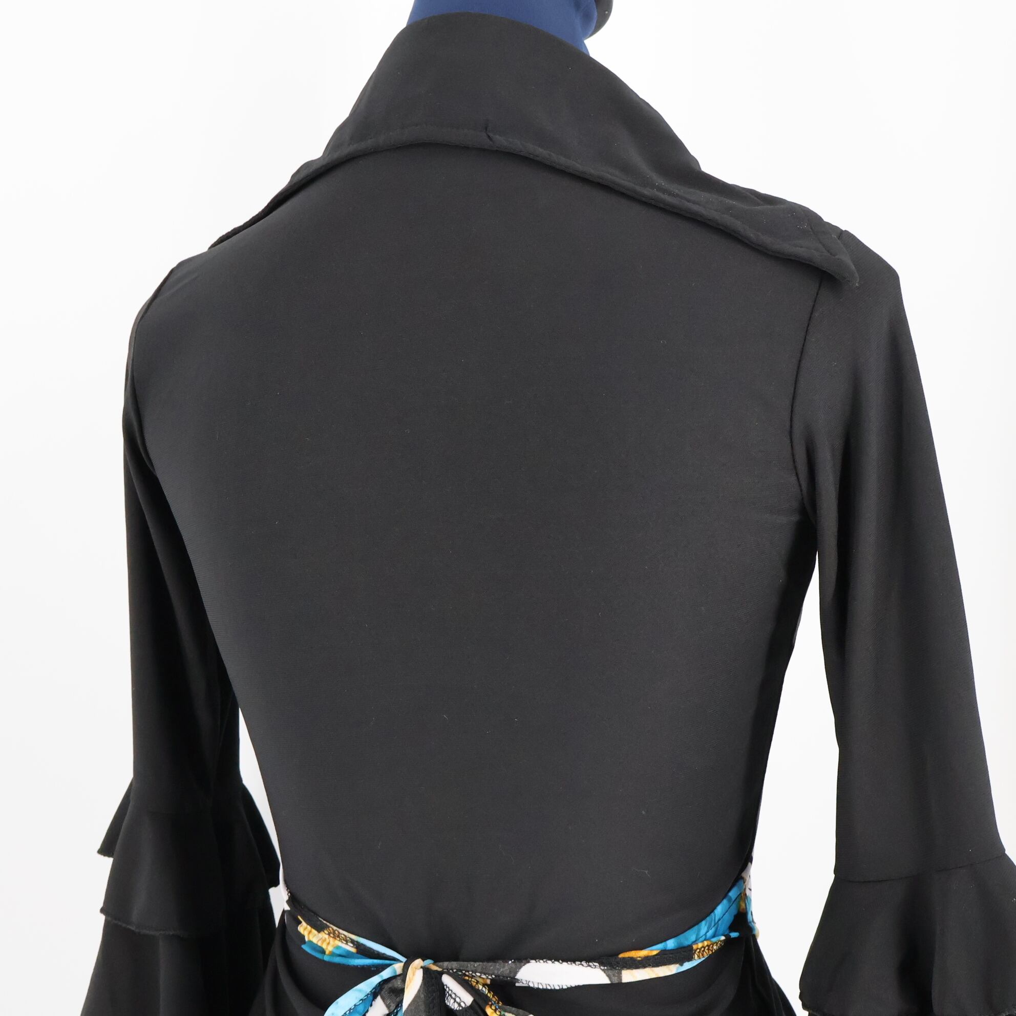 【フラメンコ衣装】ブラック 上下セット セットアップ ツーピース 青 水色 黒 長袖 ファルダ 薔薇 花柄 伸縮 ストレッチ 練習