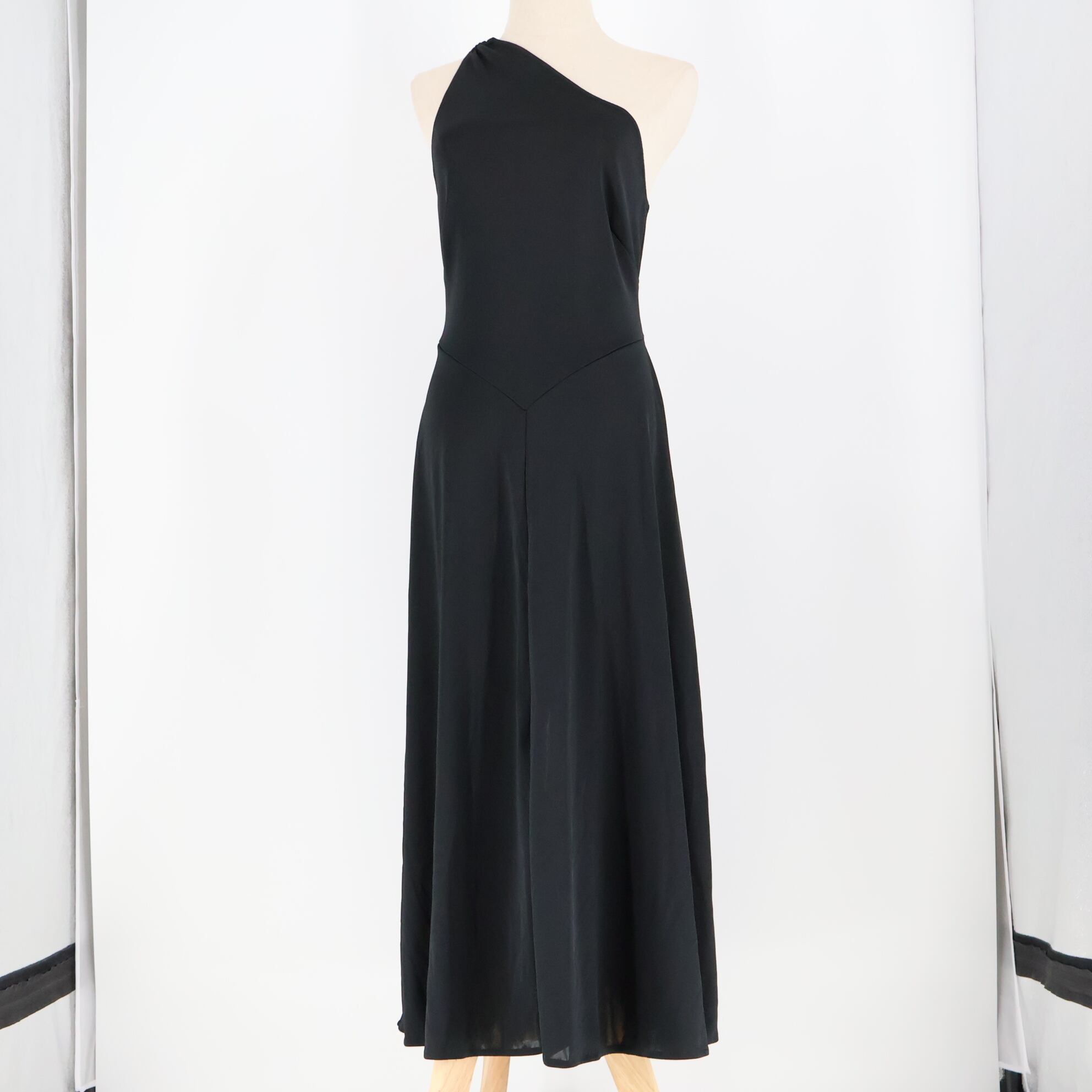 【美品 日本製 社交ダンス衣装】ブラック Chacott チャコット ワンピース ドレス 黒 無地 軽い 薄い ワンショルダー 発表会