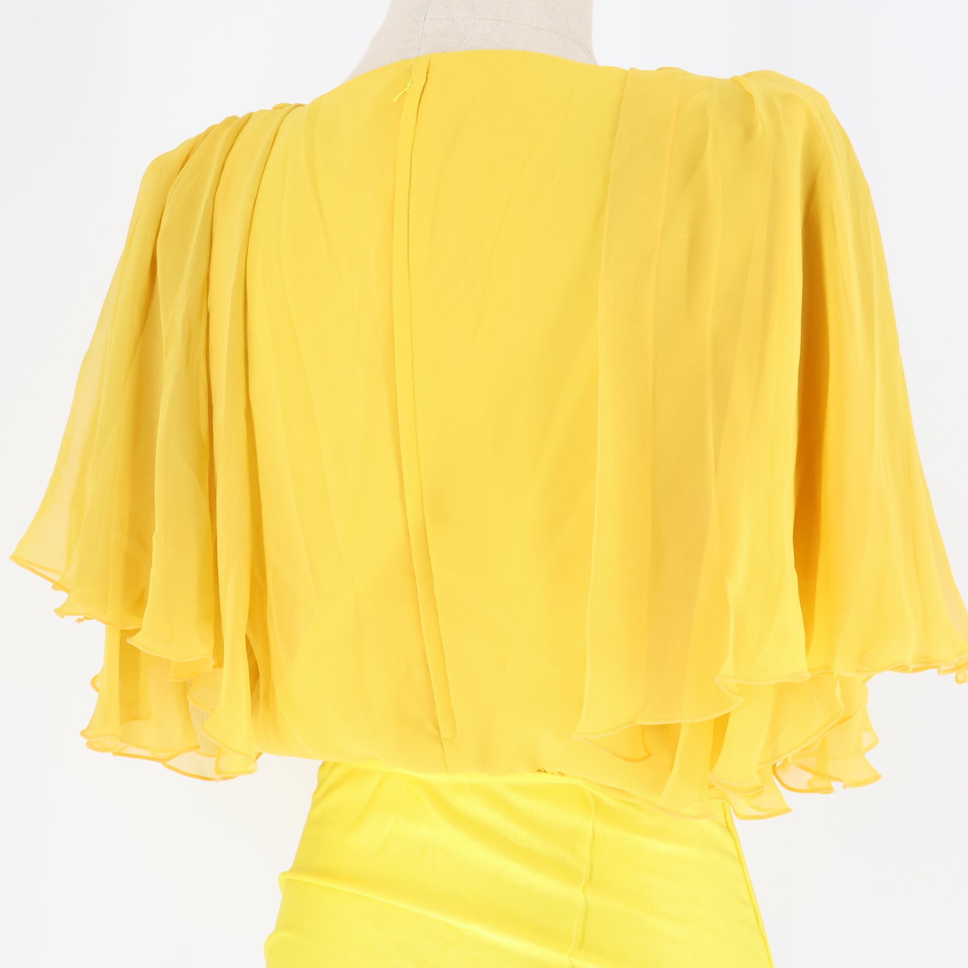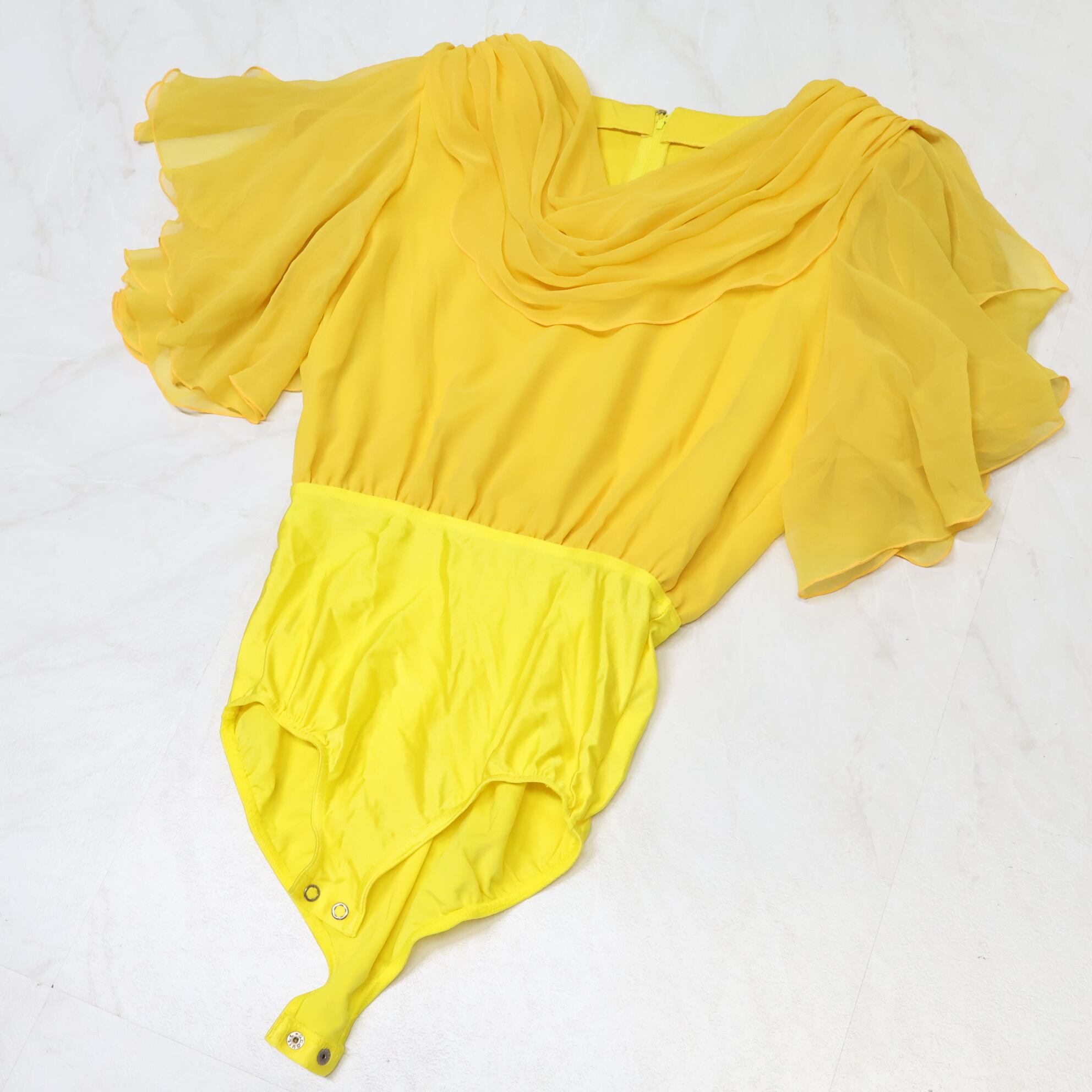 【日本製 社交ダンス衣装】イエロー Chacott チャコット ブラウス トップス 黄色 無地 ドレープ レース 綺麗 軽い マスタード