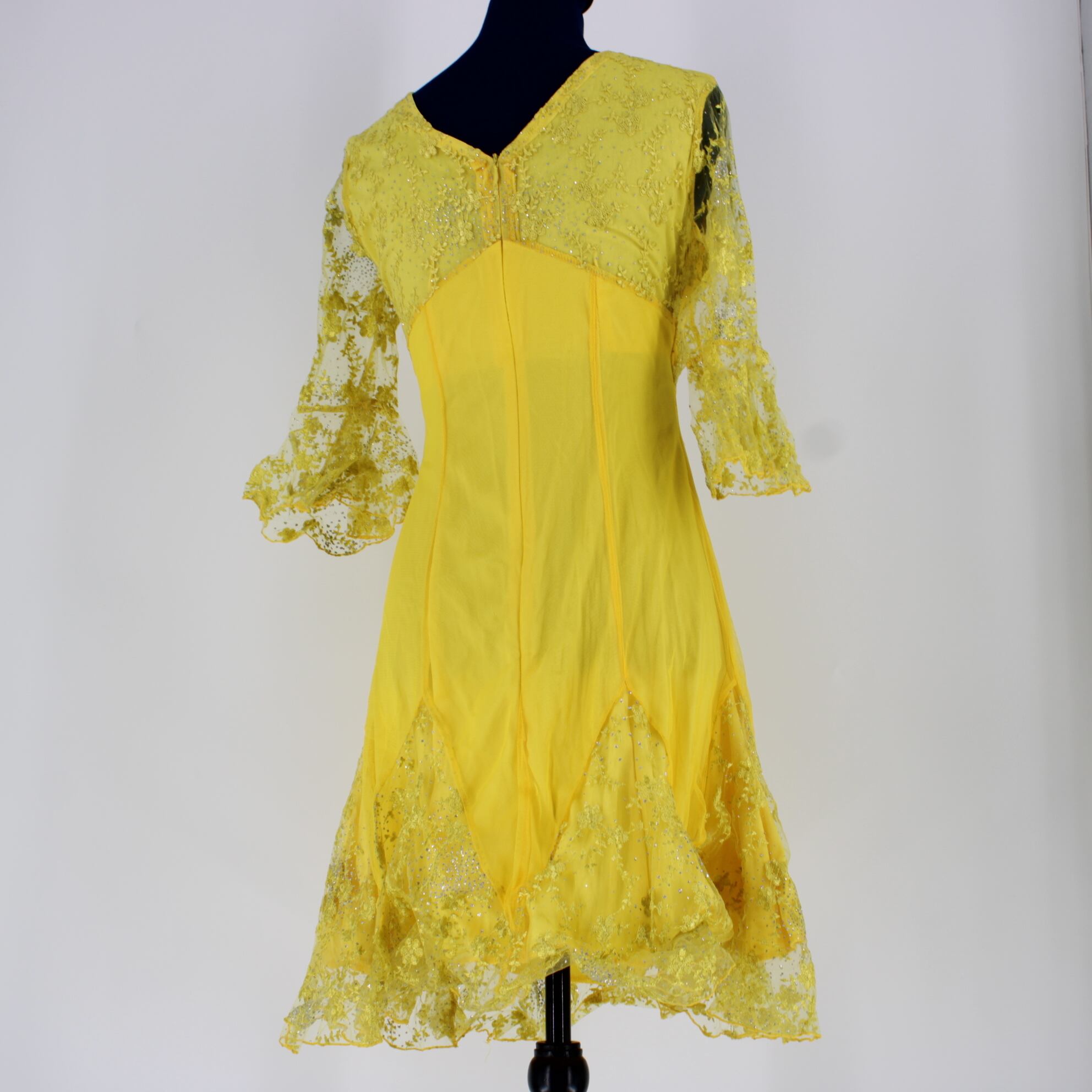 【美品 社交ダンス衣装】leirena レイリーナ ワンピース ドレス 黄色 イエロー レース かわいい 可愛い フェミニン 清楚