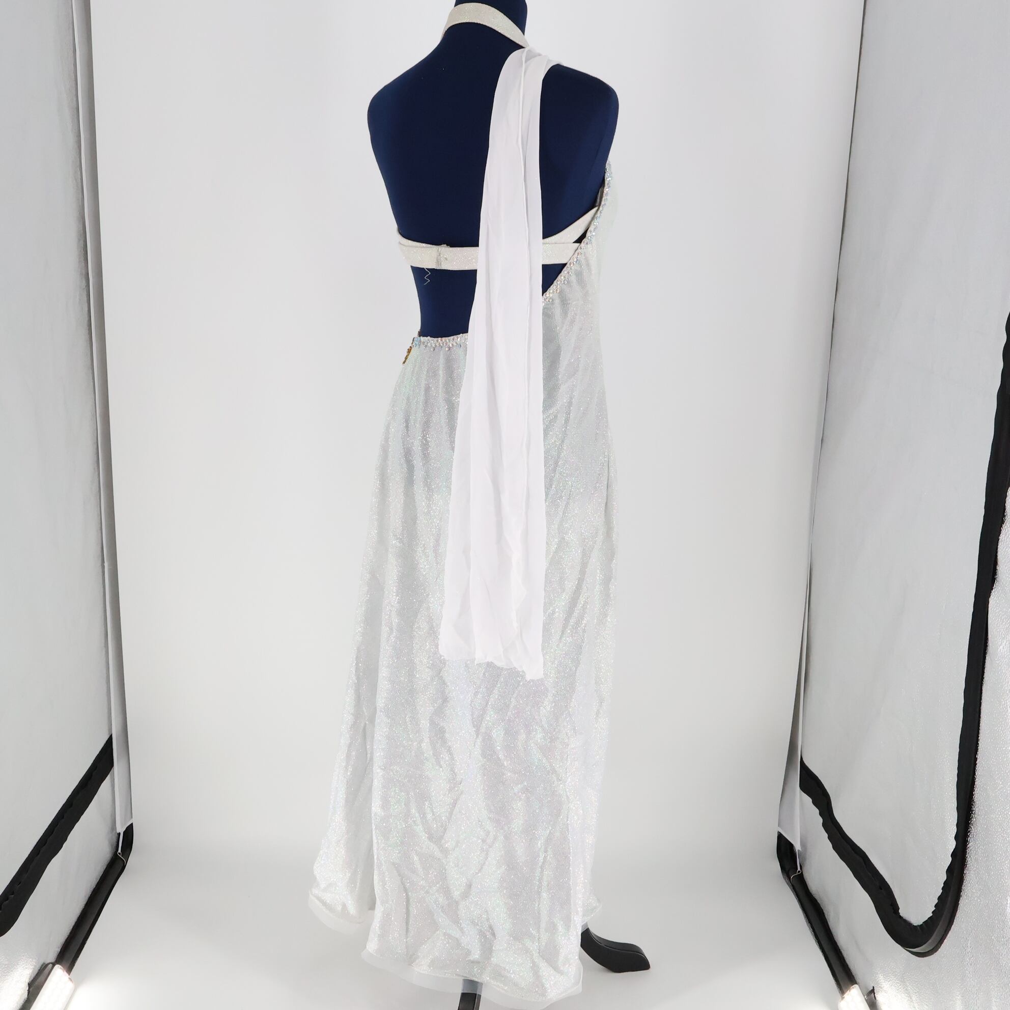 #ダンス衣装 #ダンスコスチューム #ステージ衣装 #古着 #中古 #ENUTSU #ベリーダンス #オリエンタル衣装 #ホワイトドレス #ラインストーン #ラメ入り #ゴールド装飾 #花柄デザイン #スリット入り #煌びやか #豪華衣装 #一体型コスチューム #エレガントスタイル #ステージ映え #華やかデザイン #ダンスパフォーマンス