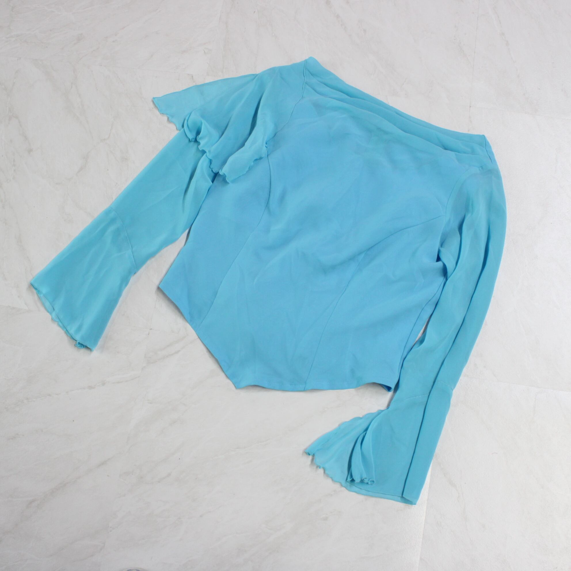 #社交ダンス衣装 #ダンストップス #PAPILLON #日本製 #ライトブルー #上品デザイン #ステージ衣装 #古着 #中古 #ENUTSU