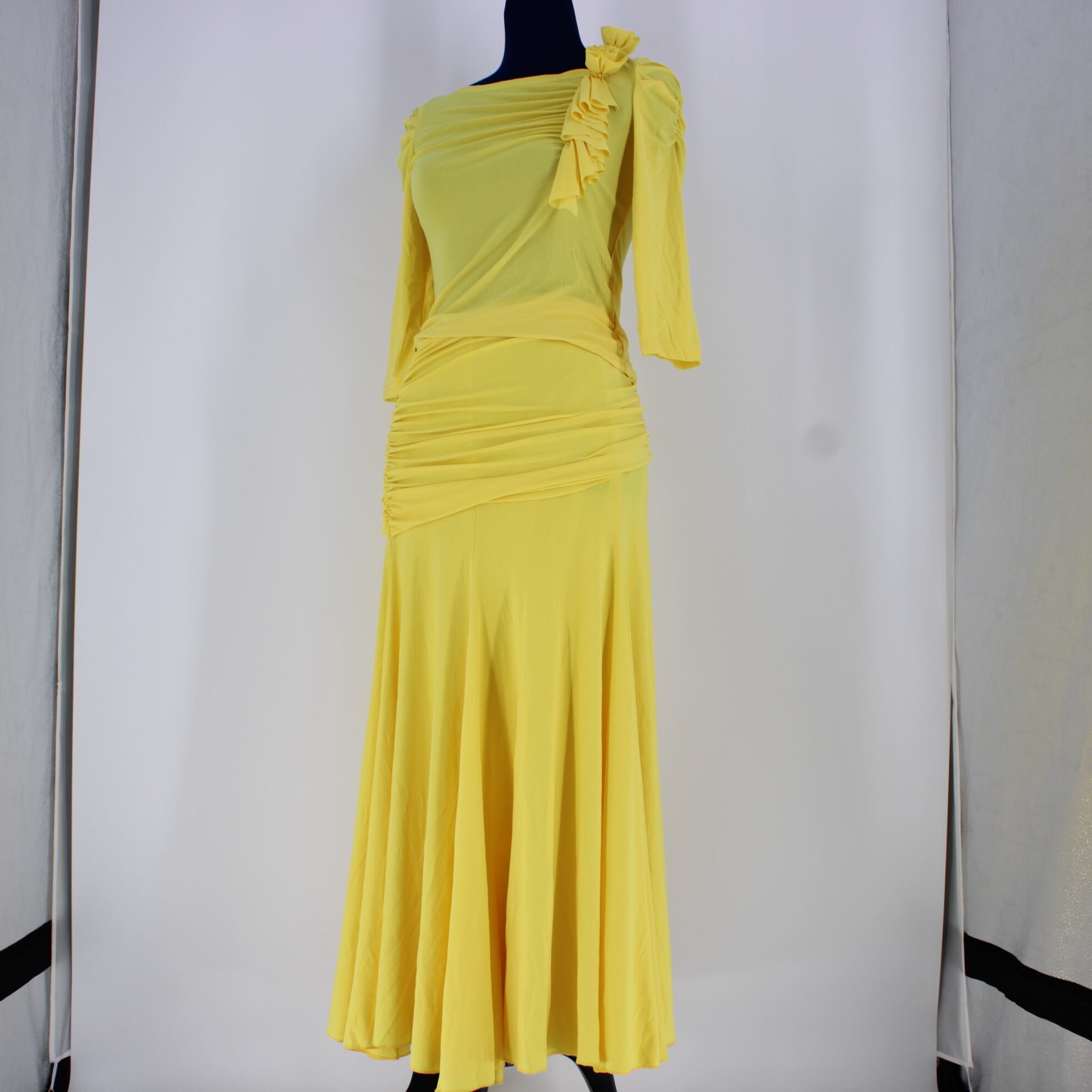 【社交ダンス衣装】上下セット create-sun トップス スカート 黄色 イエロー 無地 シンプル かわいい 可愛い