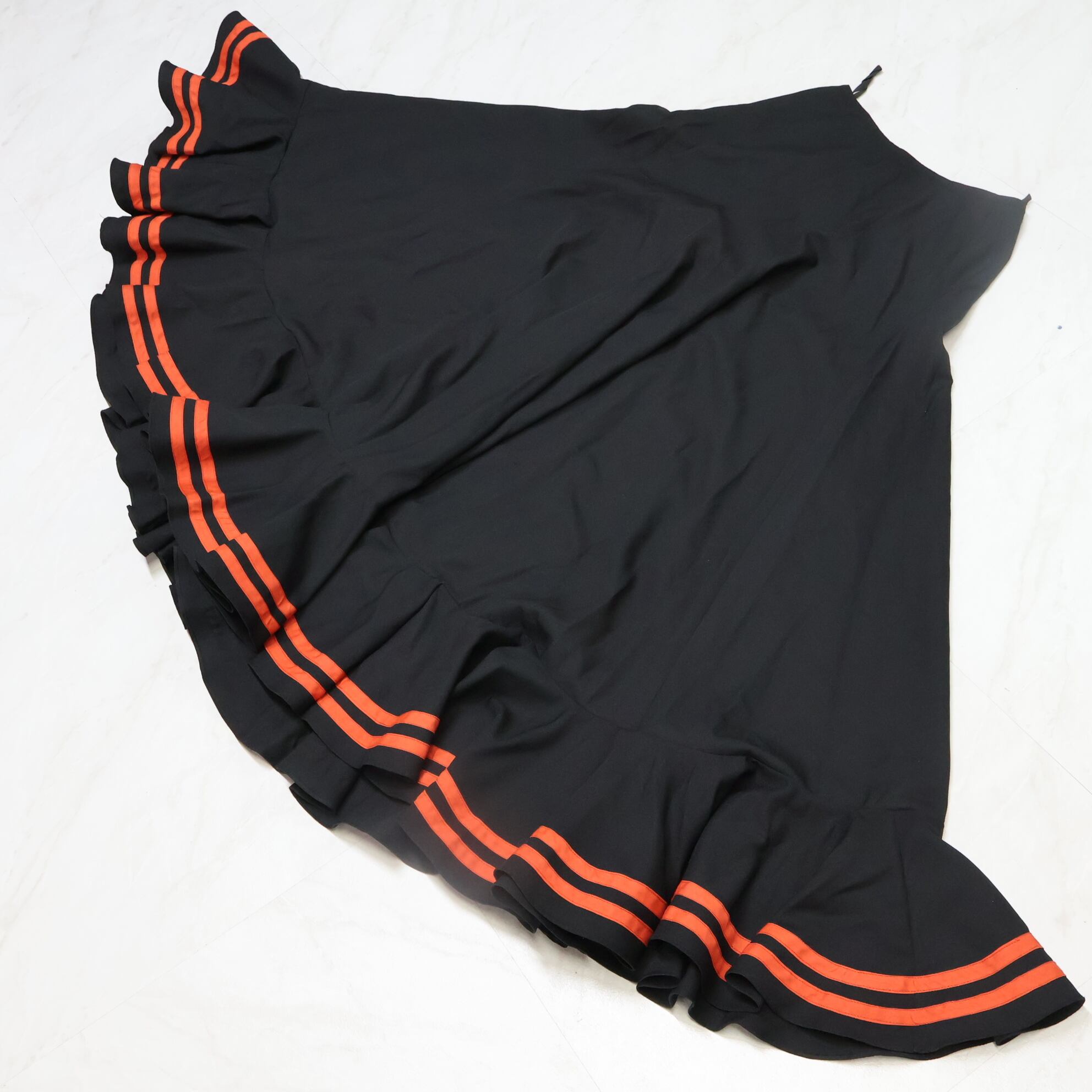 【美品 フラメンコ衣装】ブラック ファルダ スカート ボランテ 赤 黒 ライン フリル 大きい 長い 広がる 無地 レッスン 練習