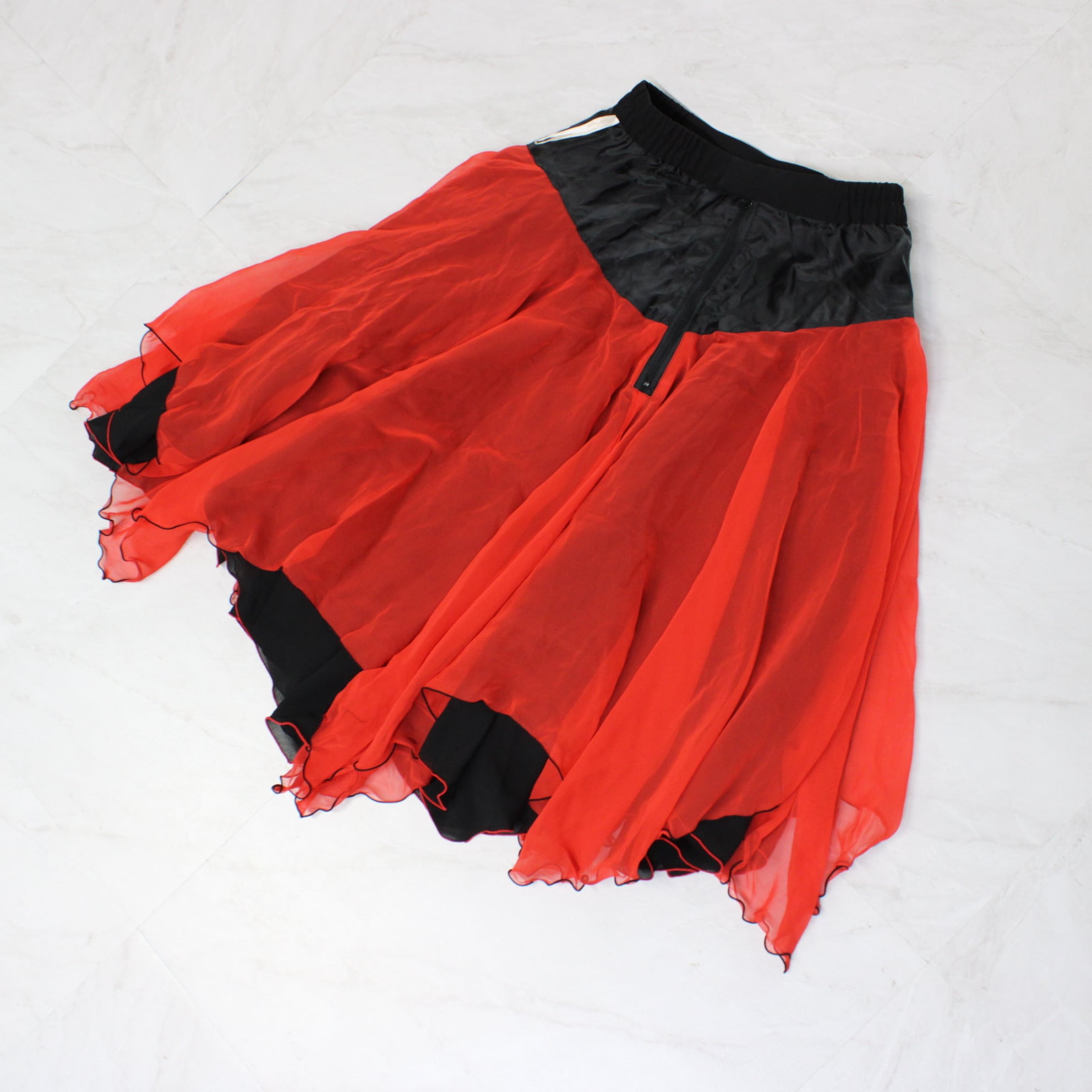 【美品 日本製社交ダンス衣装】スカート Bright Proceed ブライトプロシード Mサイズ 赤 黒 ブラック レッド バイカラー 上品