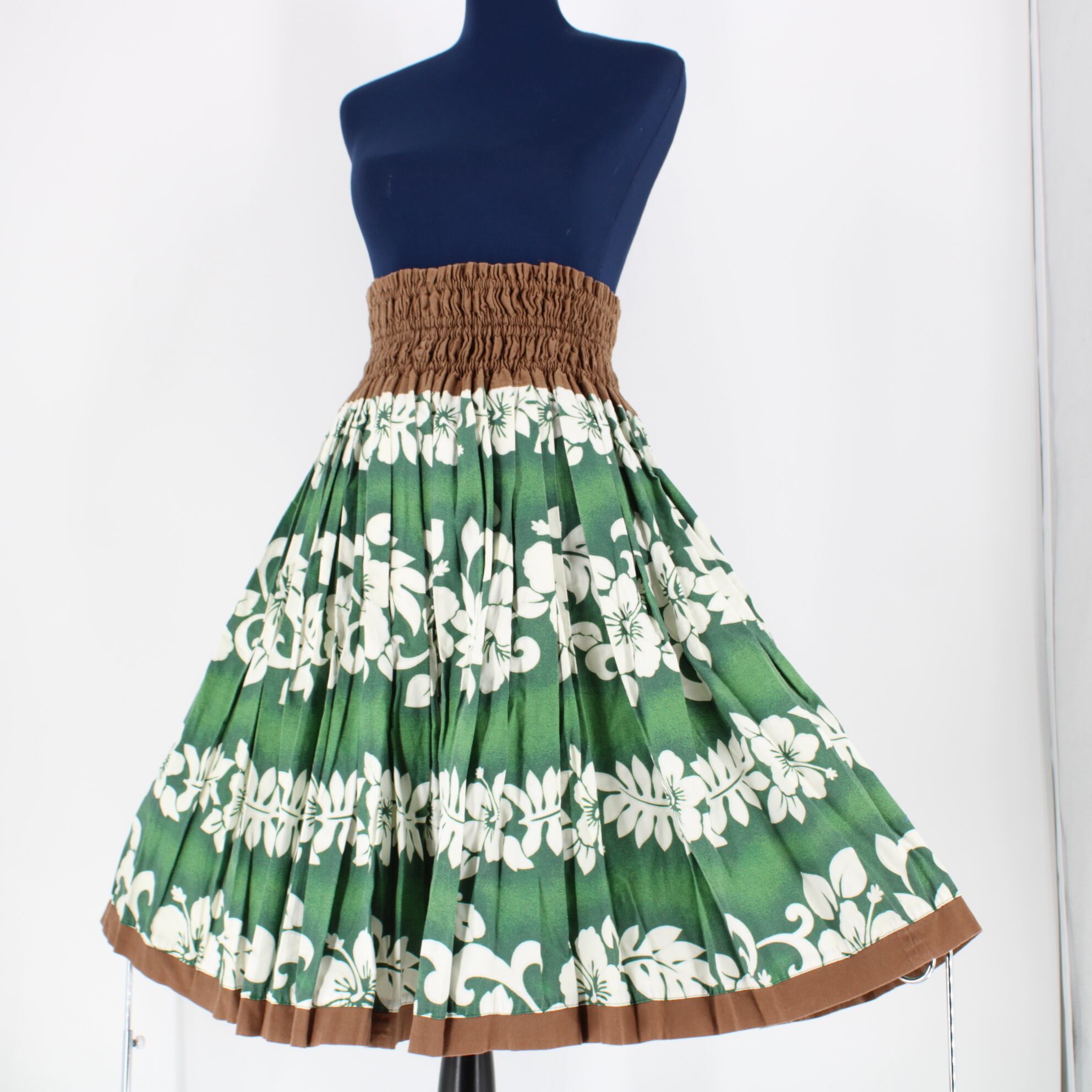 【フラダンス衣装】グリーン パウスカート ハイビスカス柄 ブラウン ホワイト 緑 茶 白 ハワイアンプリント アロハ かわいい