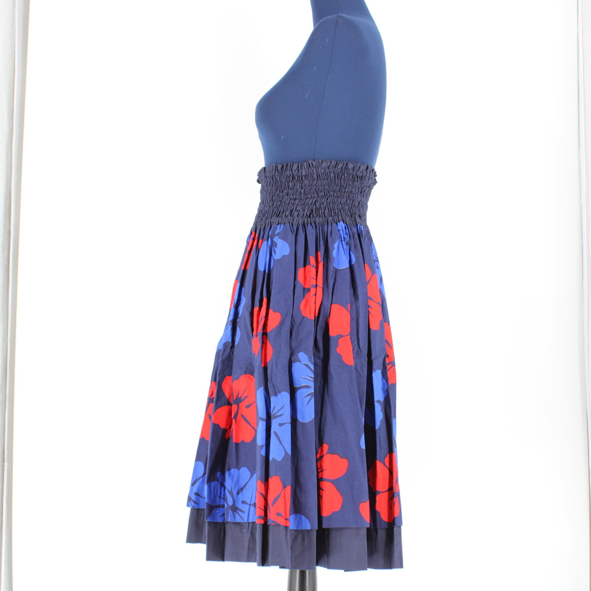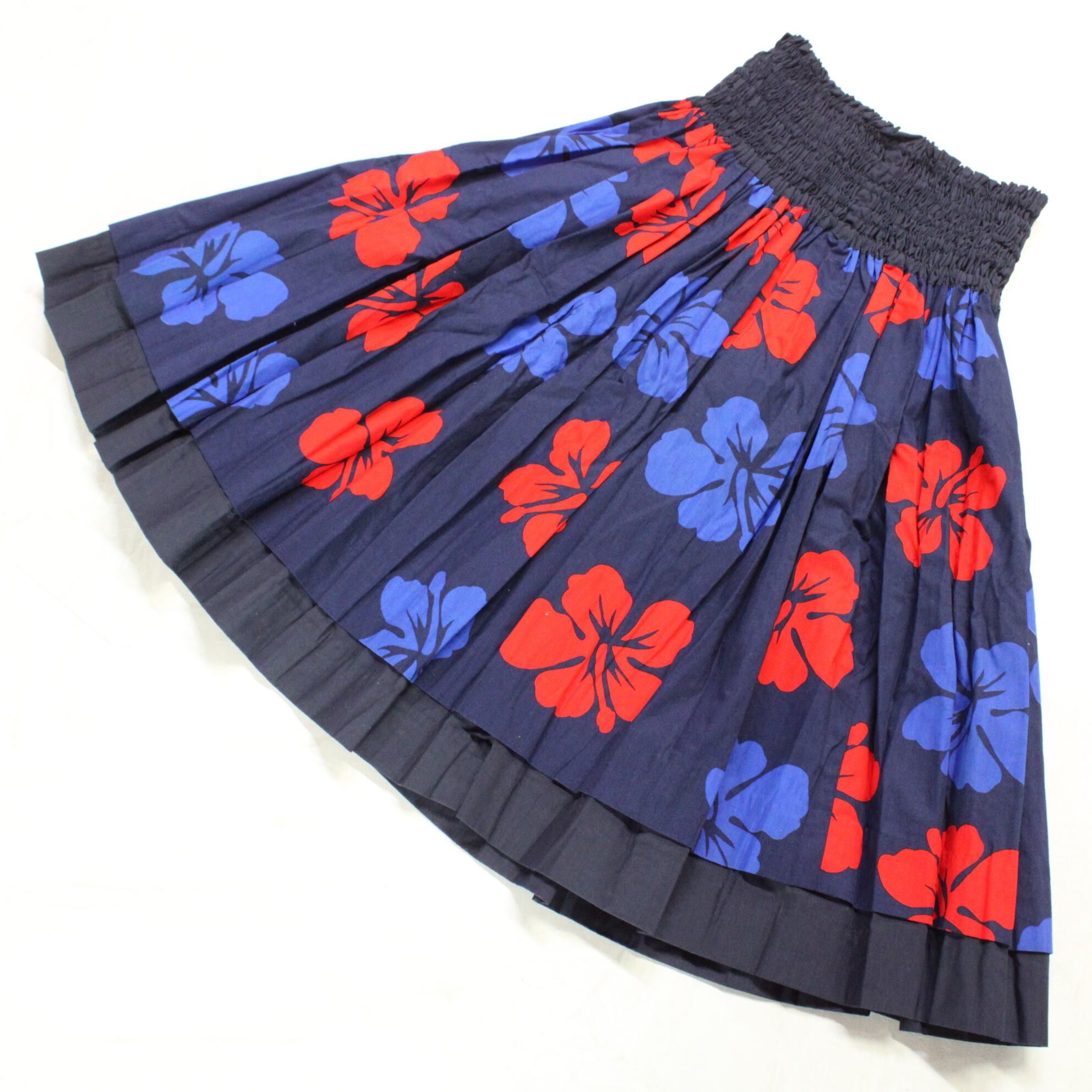 【フラダンス衣装】ネイビー Ethnic Labels パウスカート ハイビスカス柄 レッド 青 赤 紺 鮮やか 華やか ブルー かわいい 花