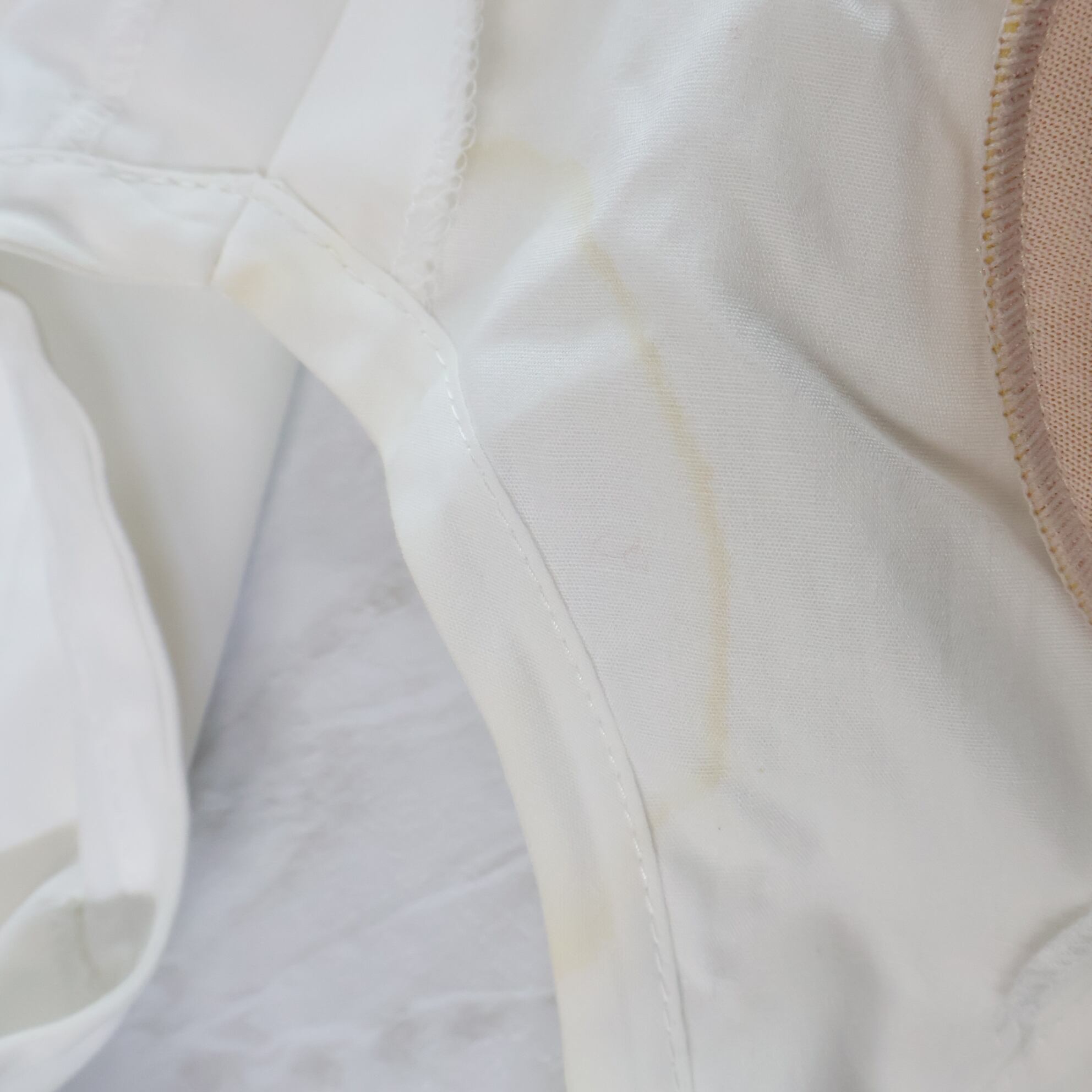 胸辺り、脇、横腹、裾付近等シミ多数有り。