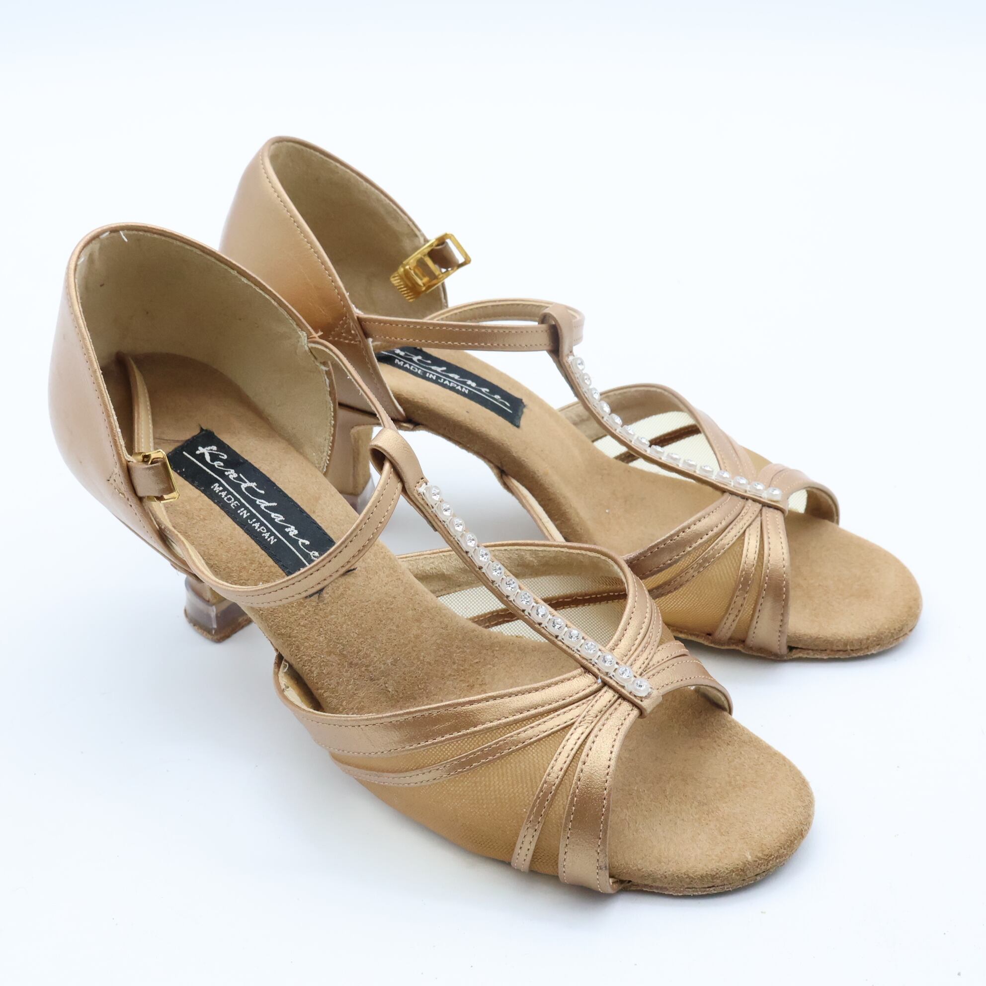 【日本製 社交ダンス用衣装】22CM kentdance ケントダンス ベージュ ダンス シューズ レディース用 メッシュ ラインストーン ブラウン 女性用 靴 ヒール 茶色