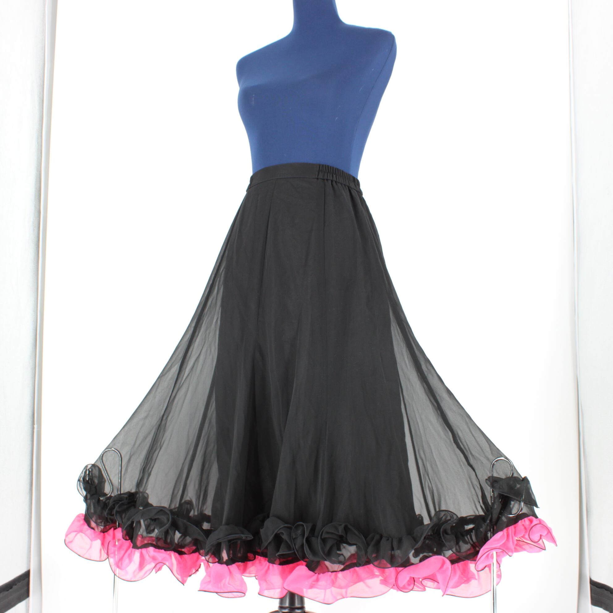 【美品 社交ダンス衣装】スカート Sanline サンリーヌ 黒 ブラック ピンク Mサイズ かわいい 可愛い 上品 バイカラー フリル