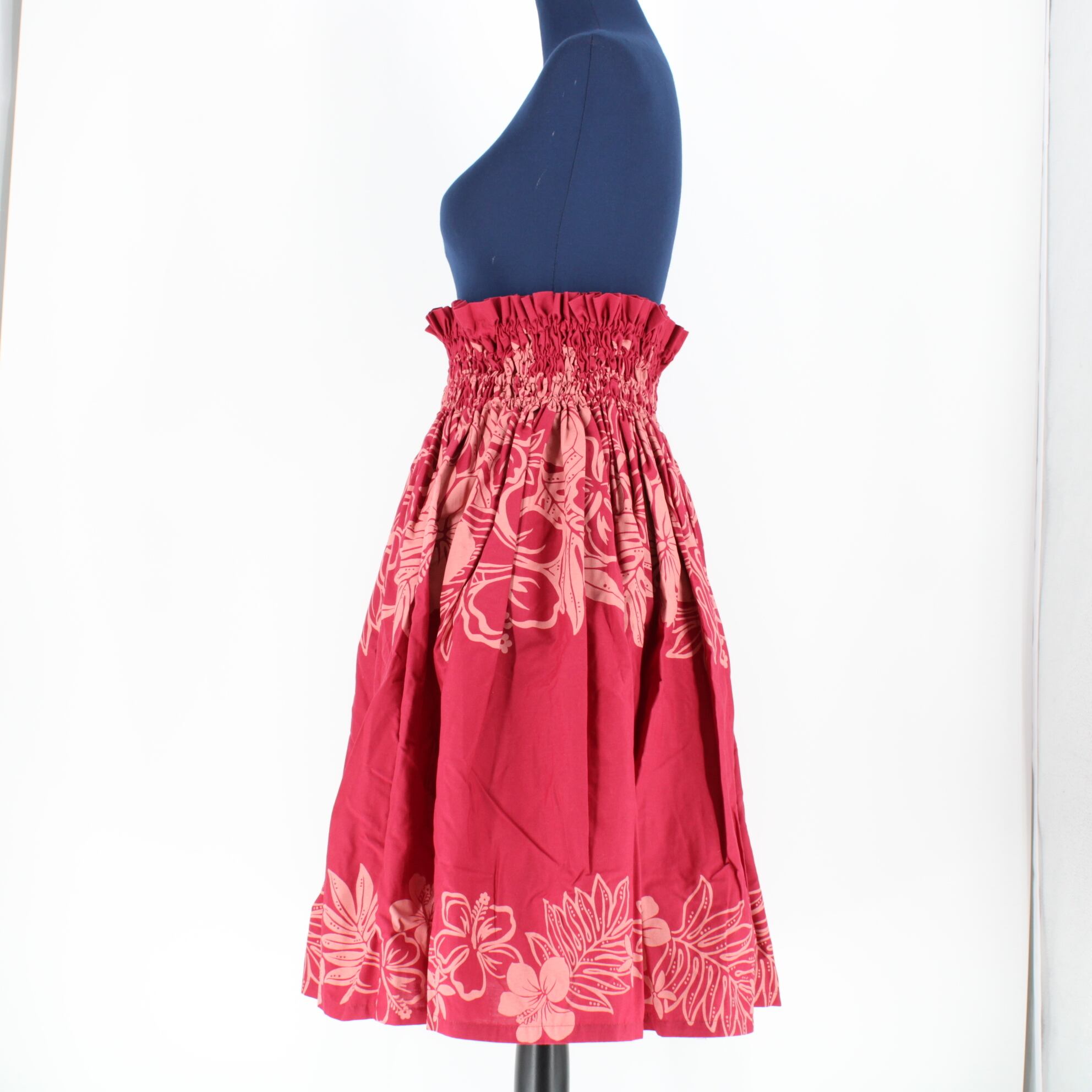 【フラダンス衣装】レッド ALOHA HAYAMA パウスカート ハイビスカス柄 ティアレ柄 花柄 赤 華やか ハワイアン アロハ かわいい