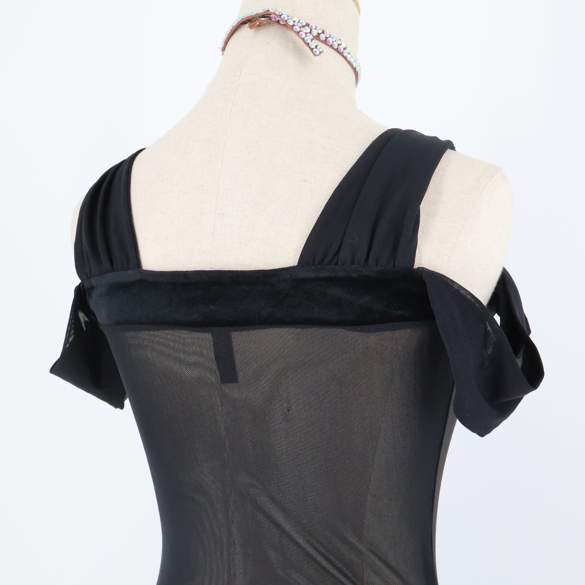【美品 社交ダンス衣装】ブラック Y JFY ラテン ドレス ワンピース 黒 白 ホワイト 伸縮 フリル 軽い 薄い チョーカー 発表会