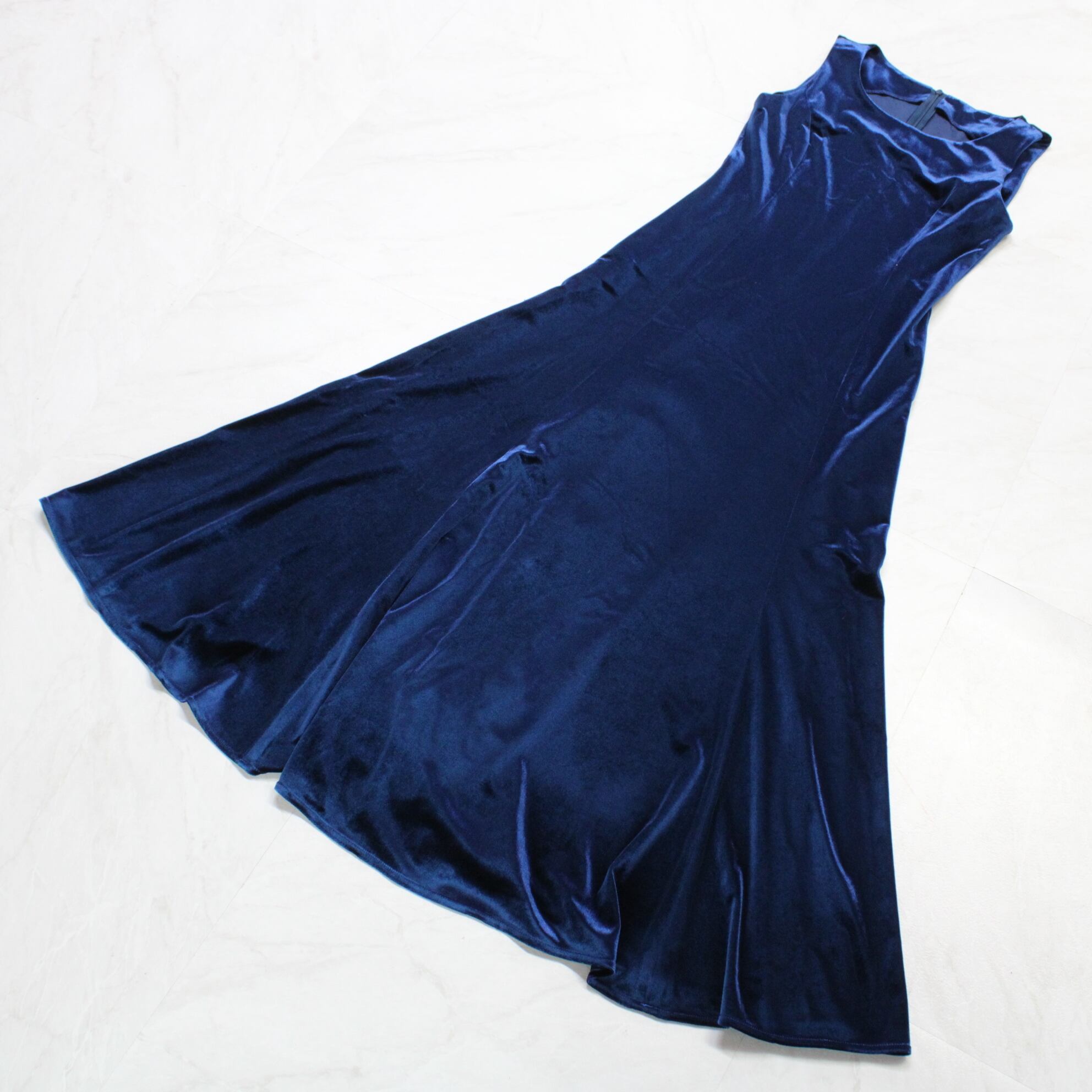 【美品 フラダンス衣装】ブルー BLUE HEAVEN COMPANY ブルーヘブンカンパニー ワンピース ドレス 紺 青 ベロア 光沢 かわいい