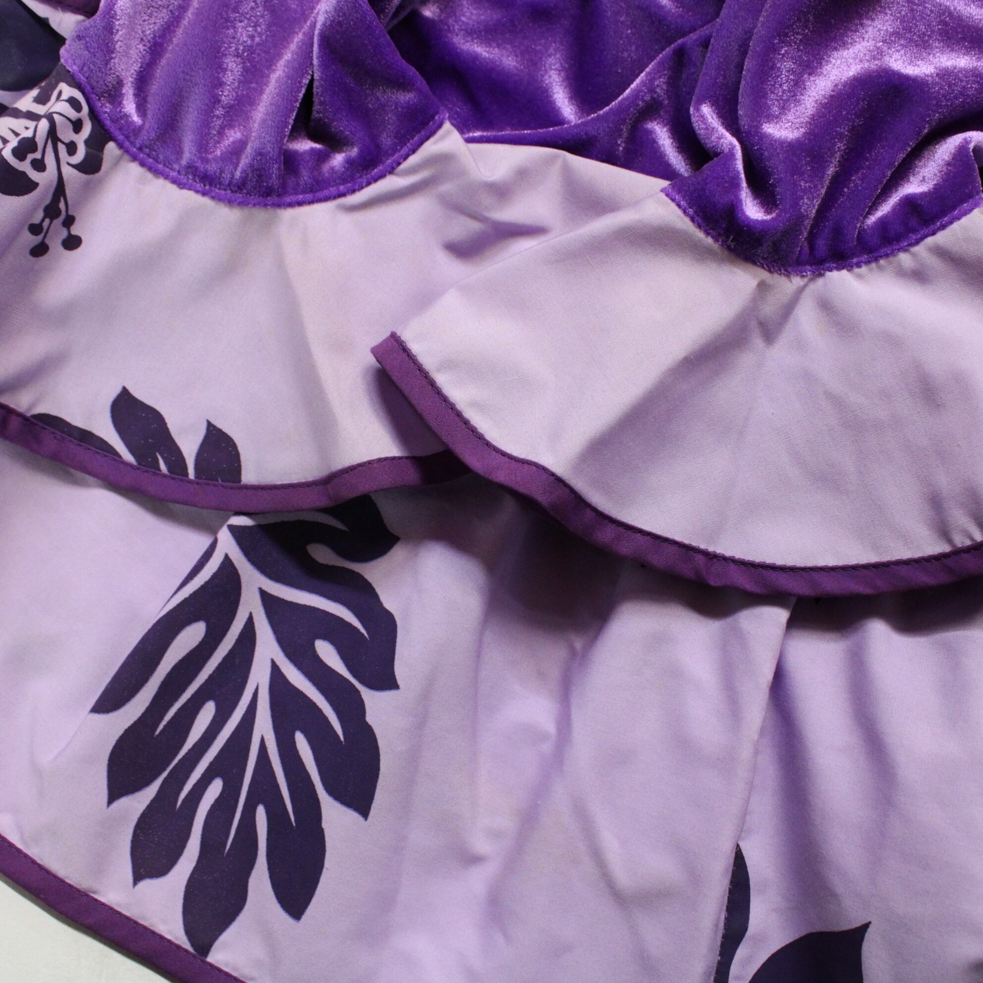 【フラダンス衣装】パープル FANCY DRESS ファンシードレス ワンピース ドレス ハイビスカス柄 フリル 紫 ベロア 可愛い 花柄