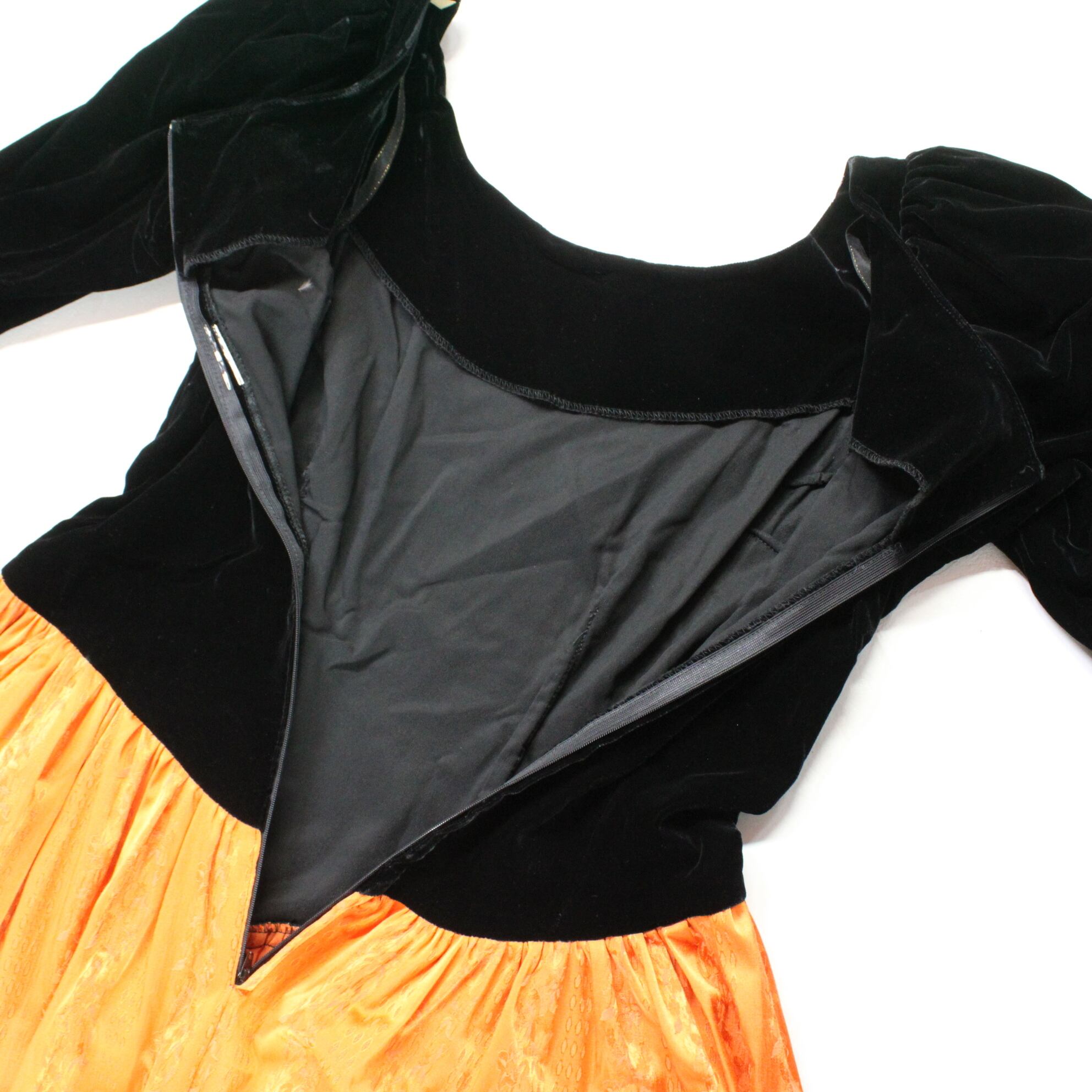 【フラダンス衣装】ブラック ワンピース ドレス オレンジ 黒 華やか フリル 花柄 ベロア 光沢 高級感 アロハ かわいい 可愛い