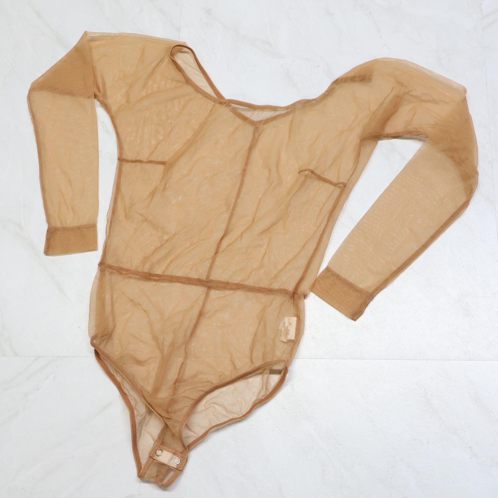 【美品 日本製 社交ダンス衣装】ベージュ Chacott チャット レオタード 肌色 インナー 長袖 レース 透け感 薄い 軽い レッスン