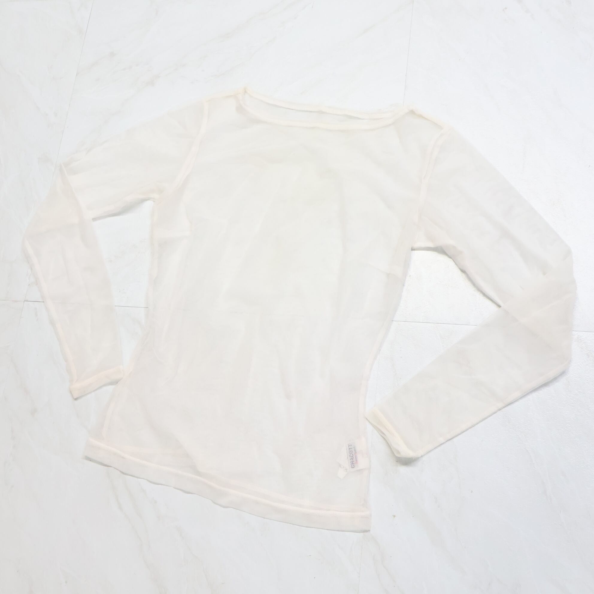 【美品 日本製 社交ダンス衣装】ホワイト Chacott チャコット トップス ブラウス 白 長袖 レース 透け感 レッスン 練習着