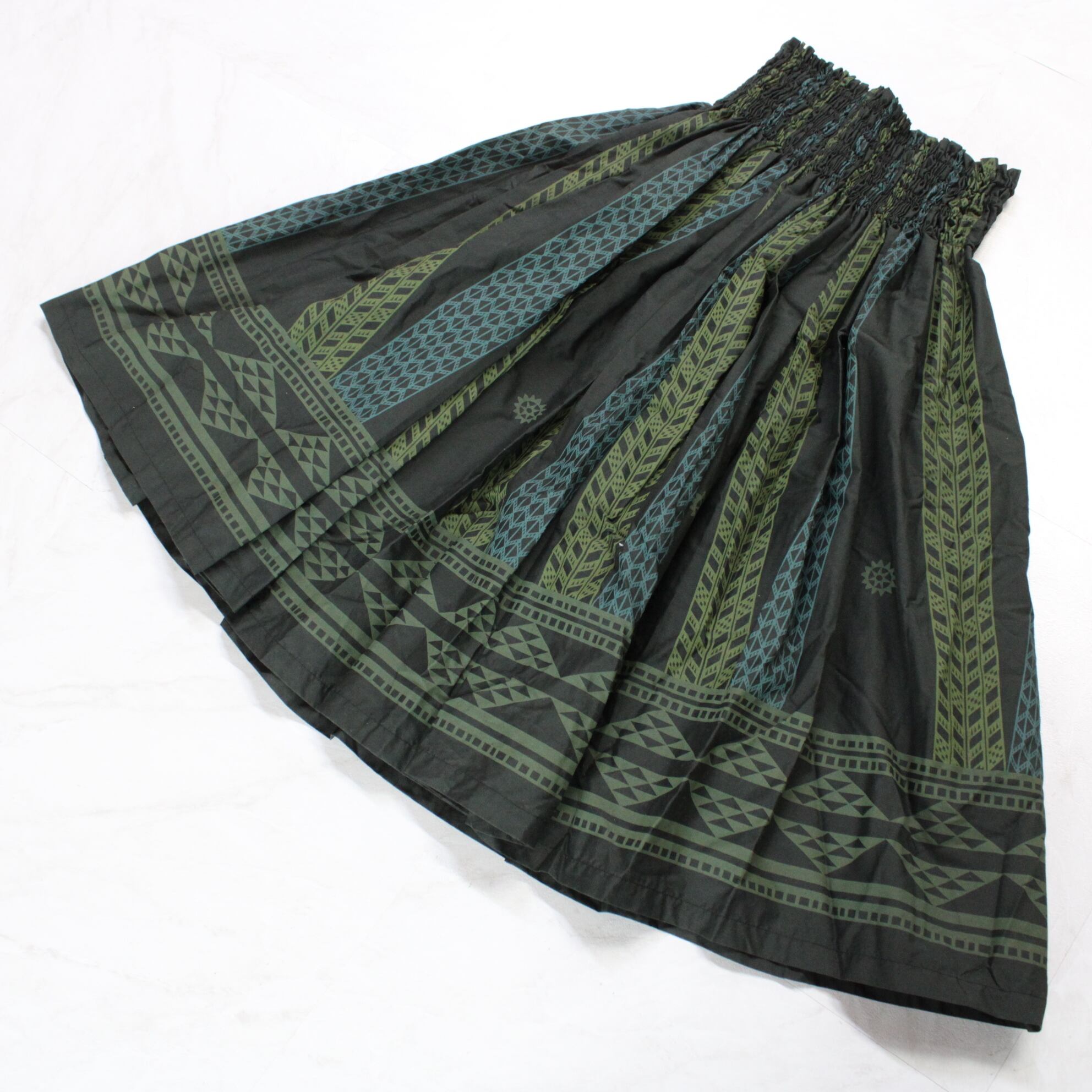 【フラダンス衣装】グリーン パウスカート 緑 カーキ ハワイアンプリント アロハ シック 水色 スカイブルー フレアスカート