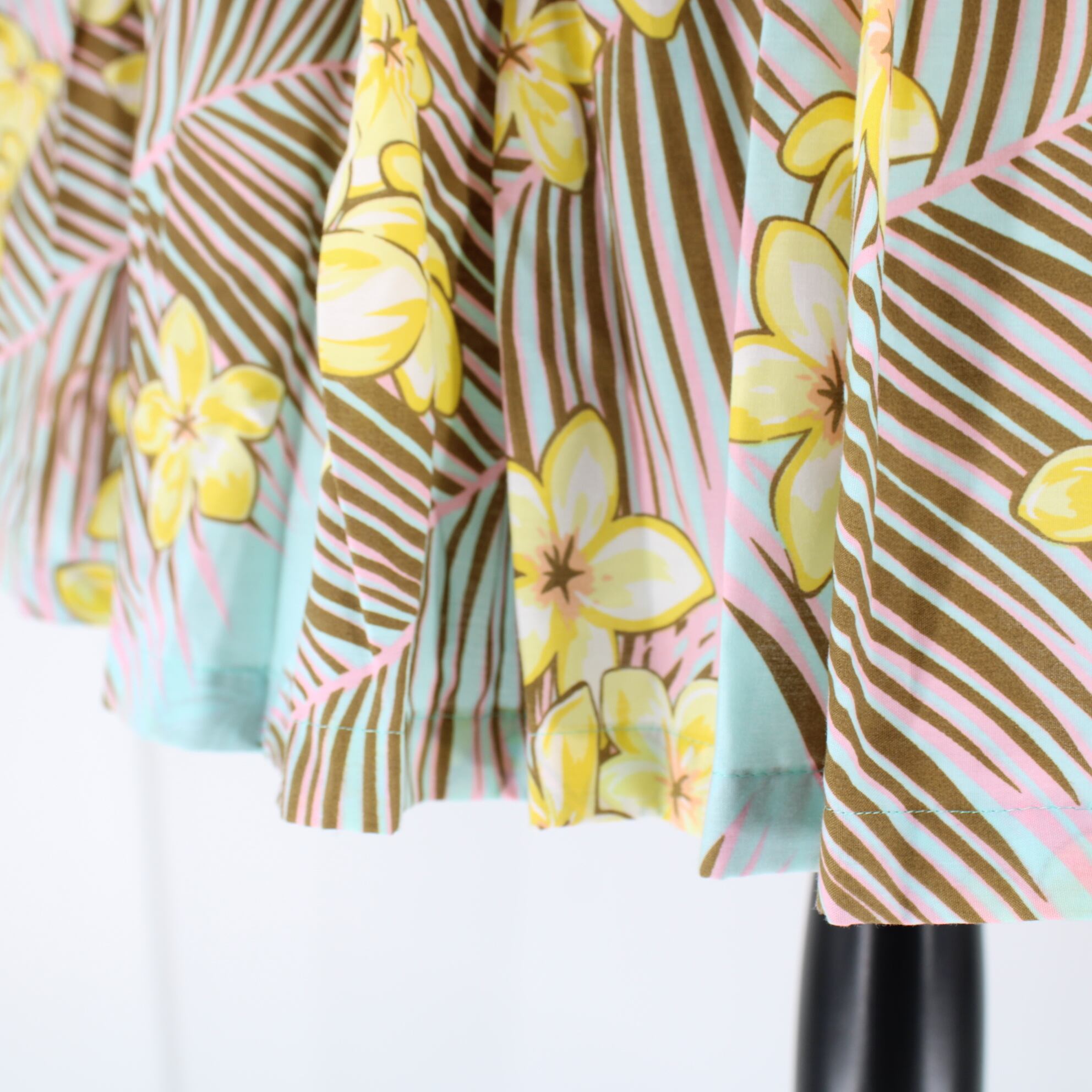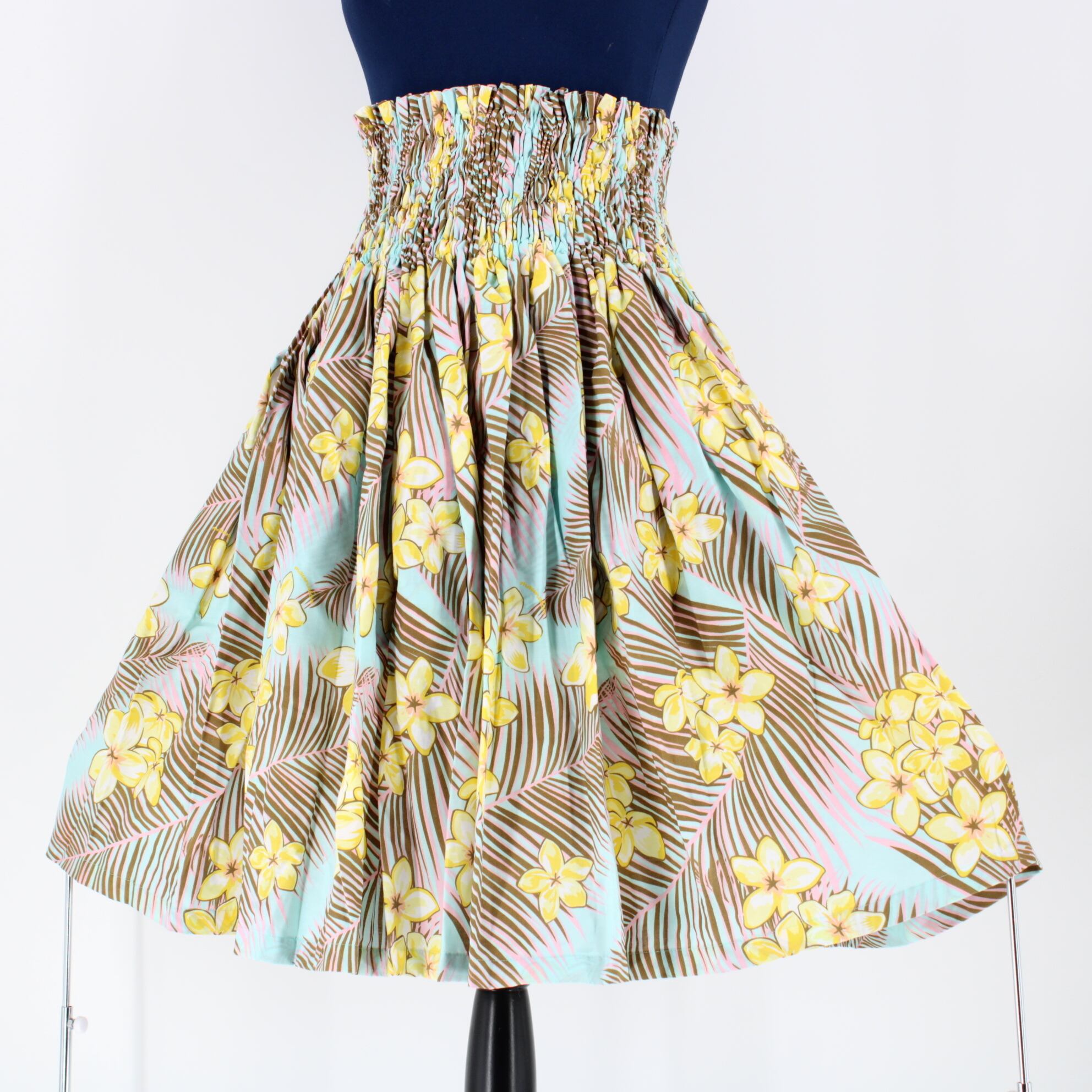 【日本製 フラダンス衣装】スカイブルー MMJ パウスカート プルメリア柄 水色 ピンク 華やか 明るい 茶 花柄 パステル 可愛い