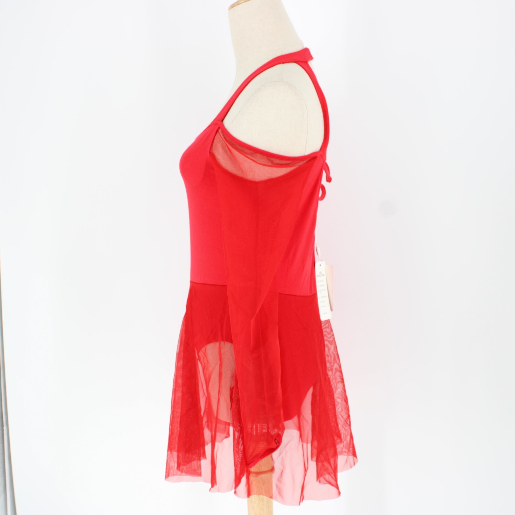 【美品 社交ダンス衣装】ワンピース ドレス ラテン iefiel 赤 レッド レオタード 無地 シンプル かわいい 可愛い 派手 目立つ