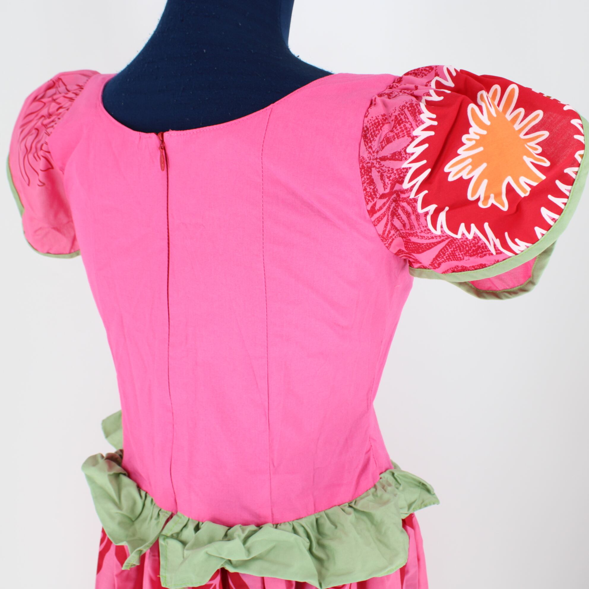 #フラダンス #ワンピースドレス #ピンク #ウリウリ #イプ #ハワイアンプリント #華やか #赤 #緑 #レッド #グリーン #フリル #可愛い #ダンス衣装 #ダンスコスチューム #ステージ衣装 #古着 #中古 #ENUTSU