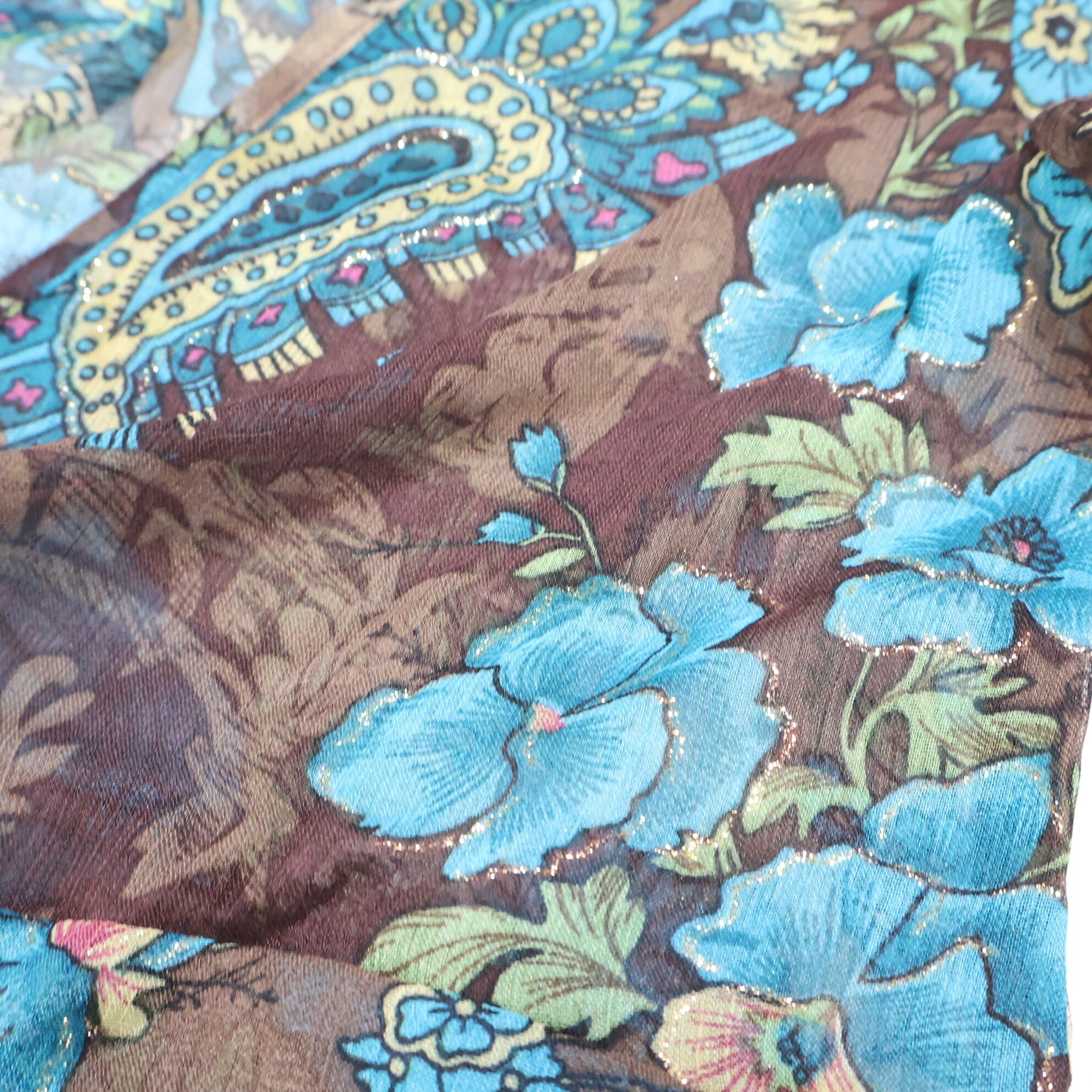 【ベリーダンス用 オリエンタル衣装】水色×ブラウン ゴールドコイン ビーズ ラメ 茶色 花柄 レース生地 リボン 華やか フリル チョリ ベルト 2点セット
