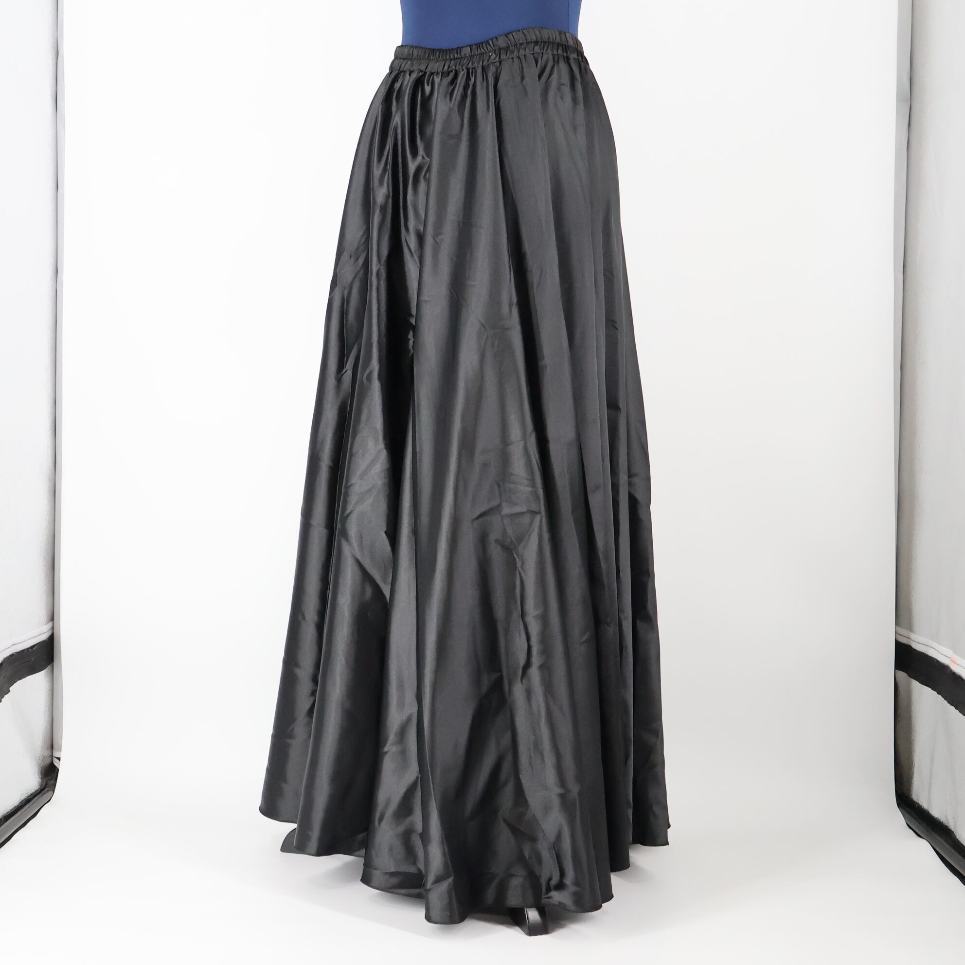 【ベリーダンス用衣装】ブラック ジプシースカート 無地 シンプル 真っ黒 ロング サテン生地 光沢 艶 漆黒 大きく広がる裾