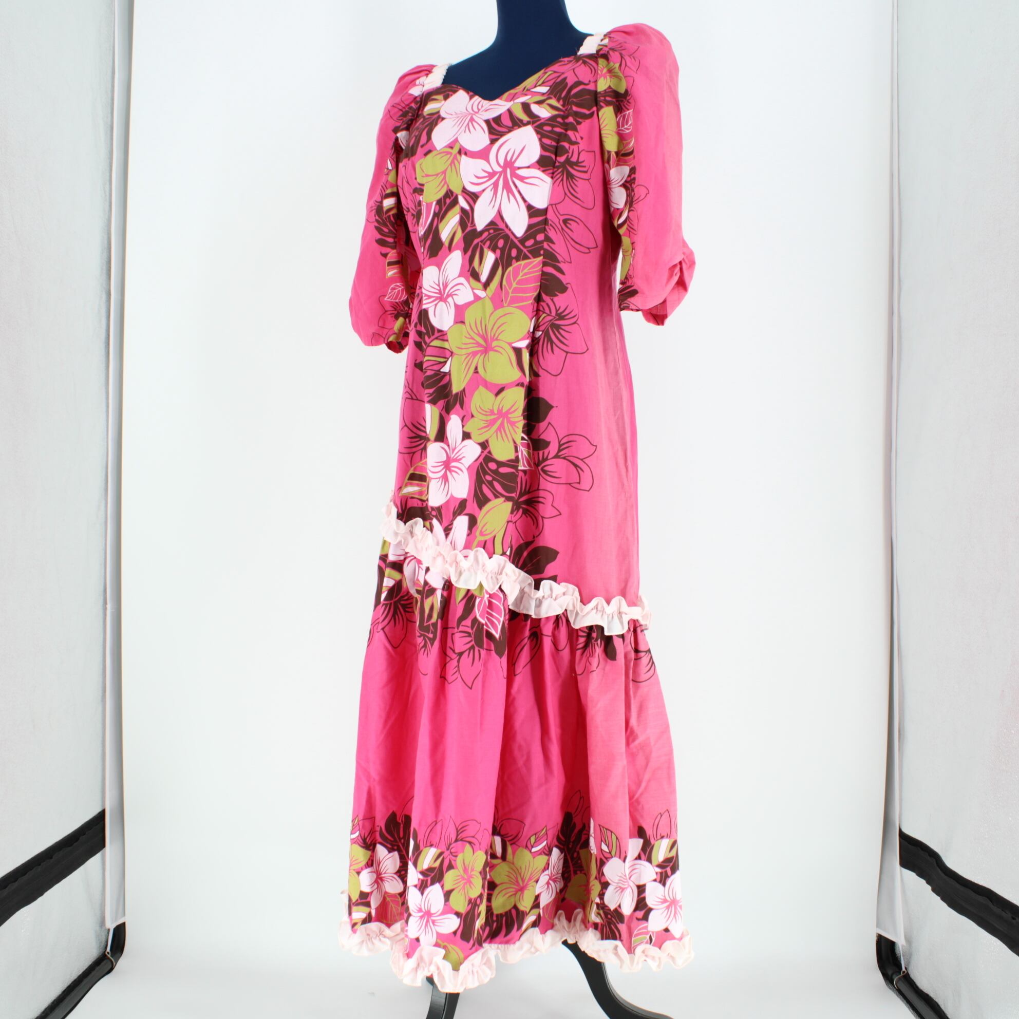 #フラダンス #ワンピースドレス #MermaidLine #MMJ #マーメイドライン #ピンク #プルメリア柄 #フリル #華やか #エレガントスタイル #フラガール #アロハファッション #可愛い #女性らしい #ダンス衣装 #ダンスコスチューム #ステージ衣装 #古着 #中古 #ENUTSU